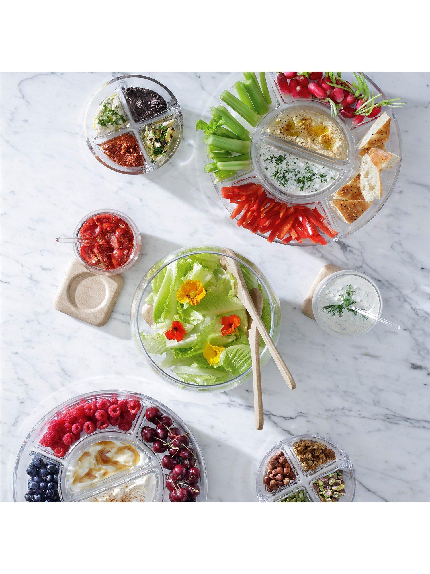 LSA InternationalServe Glass Salad Bowl with Oak Wood Servers, 27cm, Clear/Natural