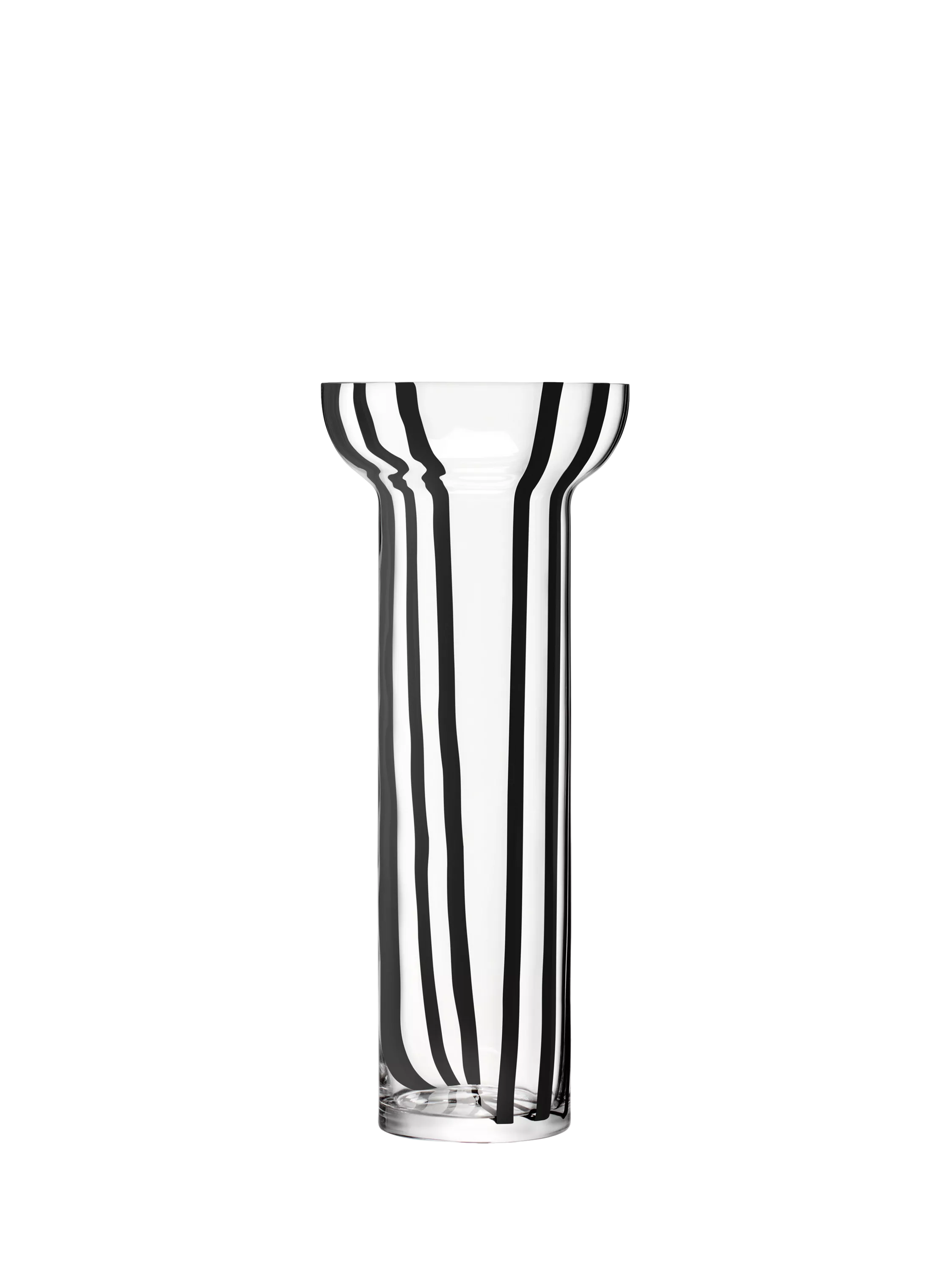 Tall column glass vase with an open top and modern stripes. From LSA International's glassware collection influenced by the twentieth-century Optical Art movement.