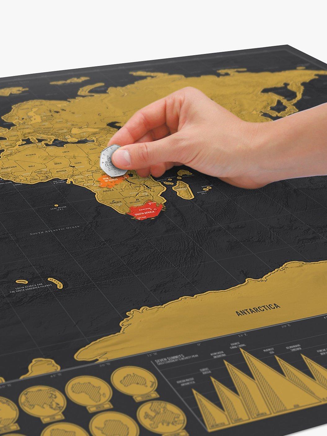 Travel in luxury and style with the new Deluxe Edition of the original Scratch Map. It’s name speaks for itself really, it is indeed deluxe! It has all the excellent features of the original Scratch Map® but is larger, with added islands, more intricate detail and more style. It’s black background with copper foil covering looks sophisticated and slick on any wall and the bright colours of the map underneath look awesome against it’s stylish backdrop.