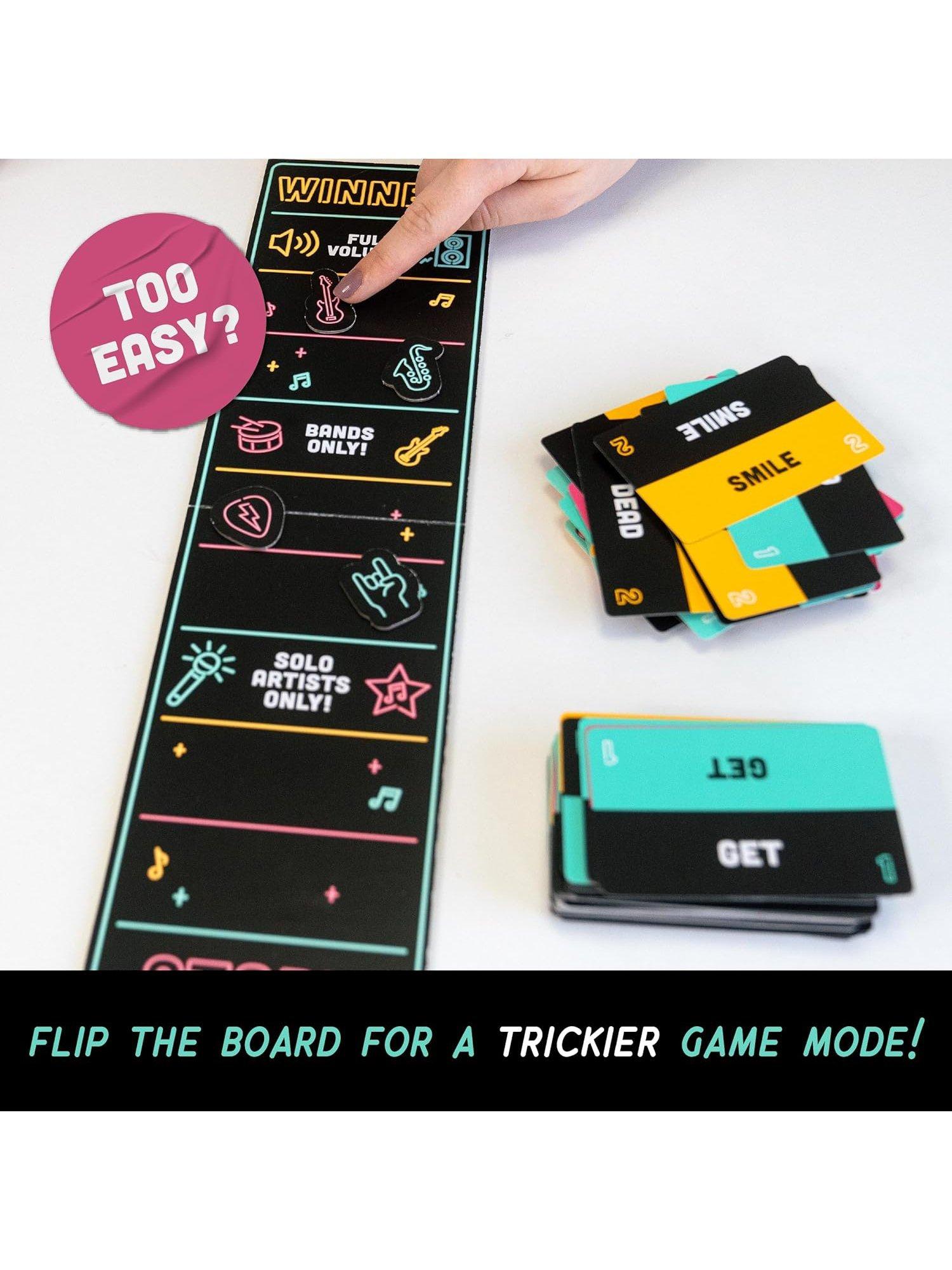 Flip a card, think quick, and race to grab the foam microphone to sing a lyric containing the revealed word. It's a fast-paced game that keeps everyone on their toes! Watch as your friends try to recall lyrics under pressure, resulting in hilarious renditions of popular songs. It's guaranteed to have everyone laughing and singing along!