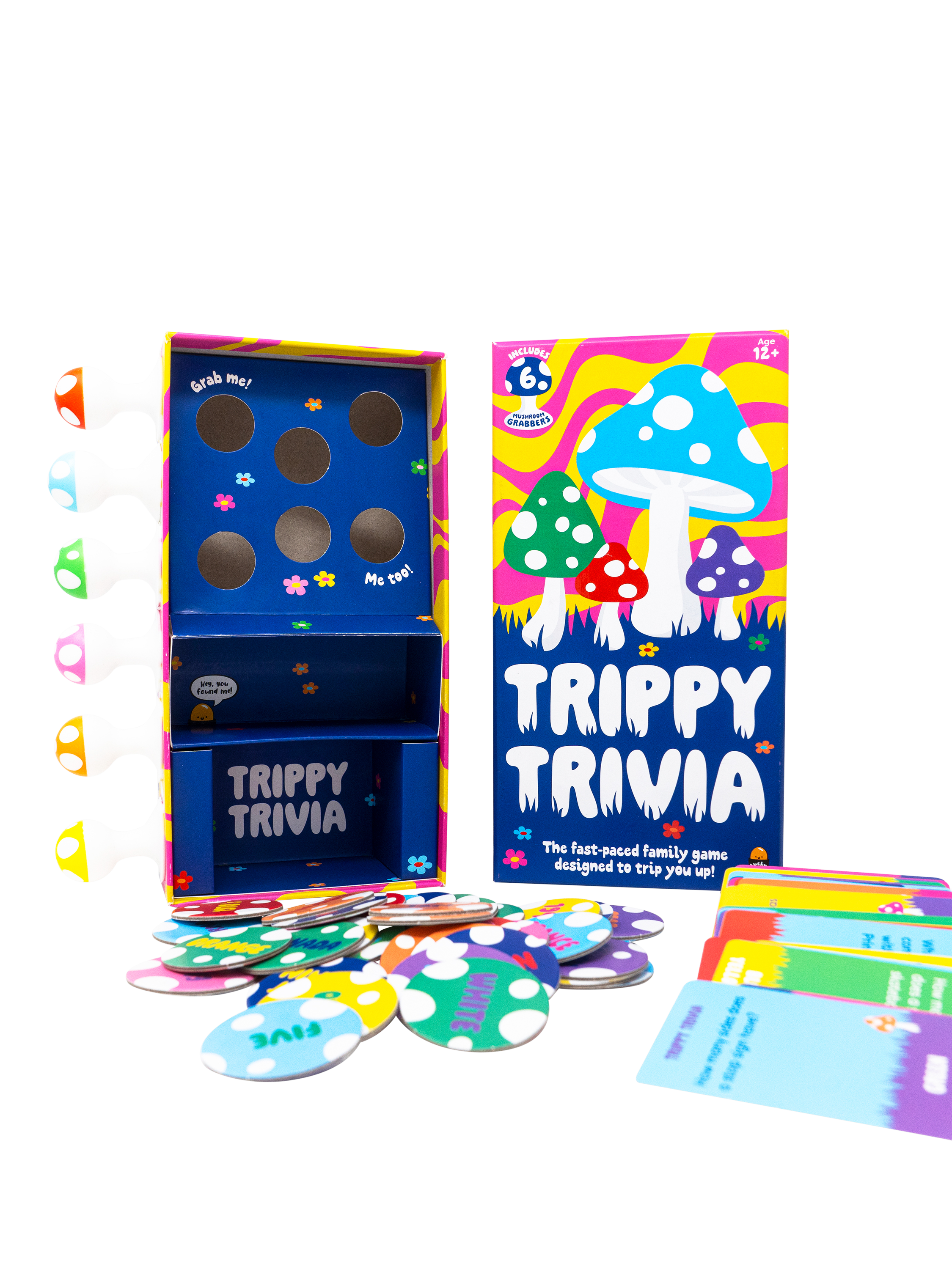 Forget boring old trivia and dive into the fast-paced world of Trippy Trivia, the mushroom-themed trivia game that adds a fun twist to family game night!
