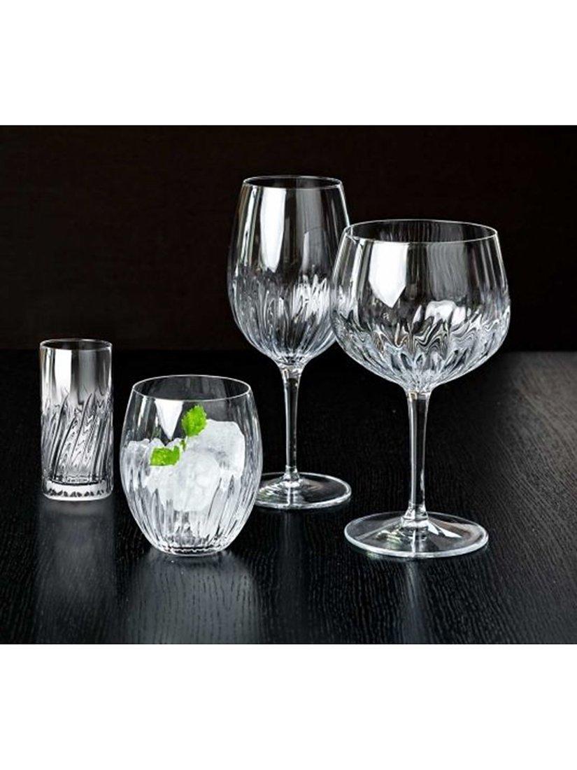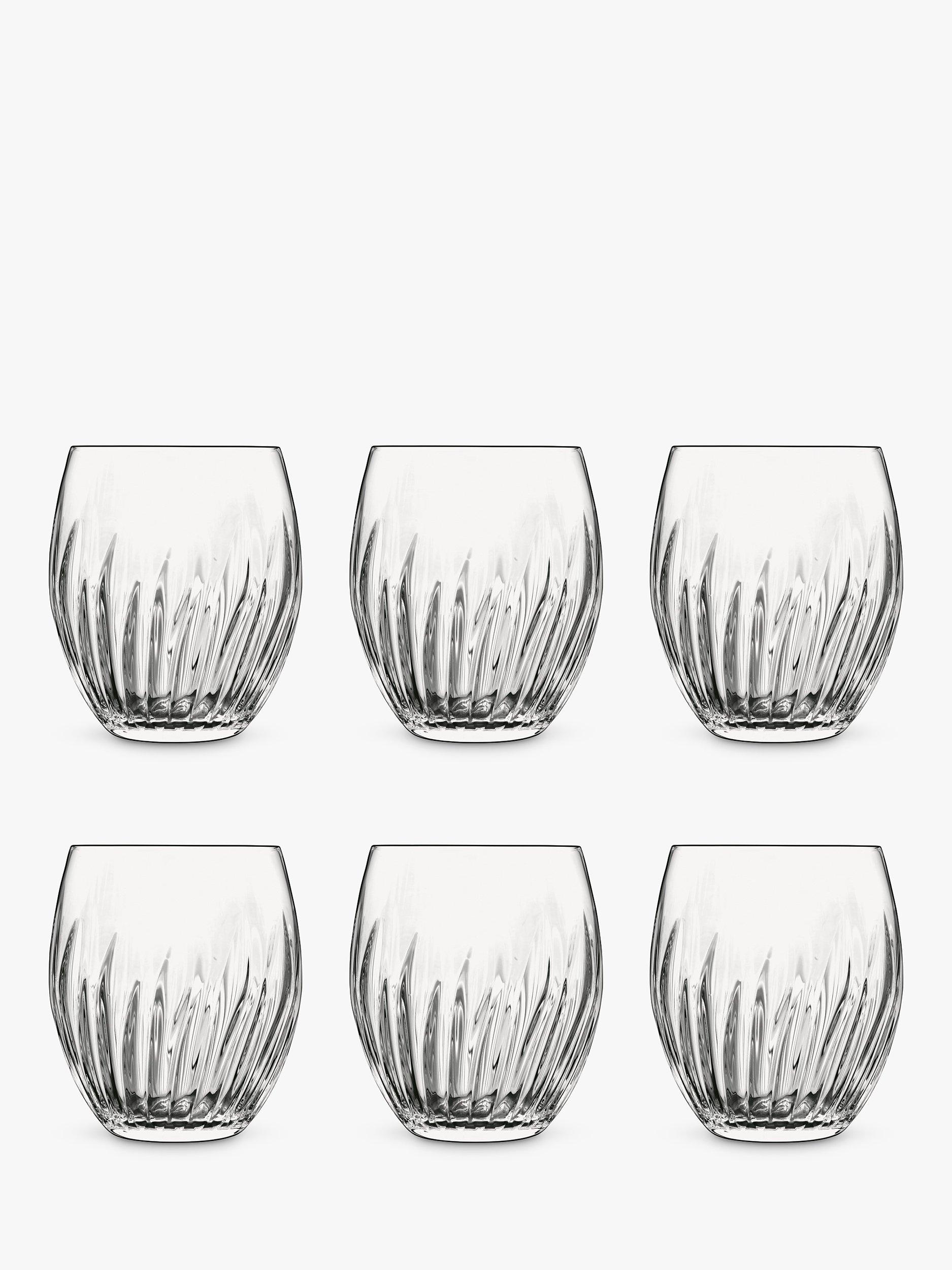 Mixology glassware from Luigi Bormioli features a contemporary cut glass design. Made in Italy with SON.hyx® high-tech blown lead-free crystal glass for strength, clarity and brilliance, these six tumbler glasses are dishwasher safe and keep their sparkle.