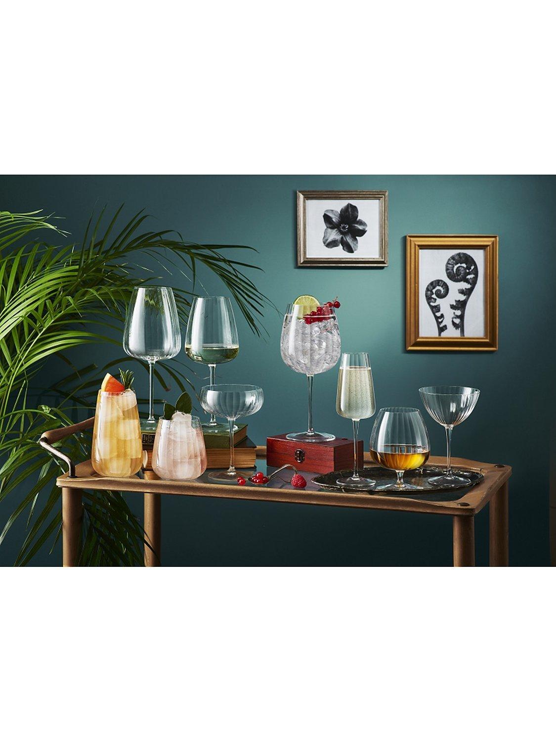 Optica glassware from Luigi Bormioli features a retro-look fluted design inspired by 1920s glassware.