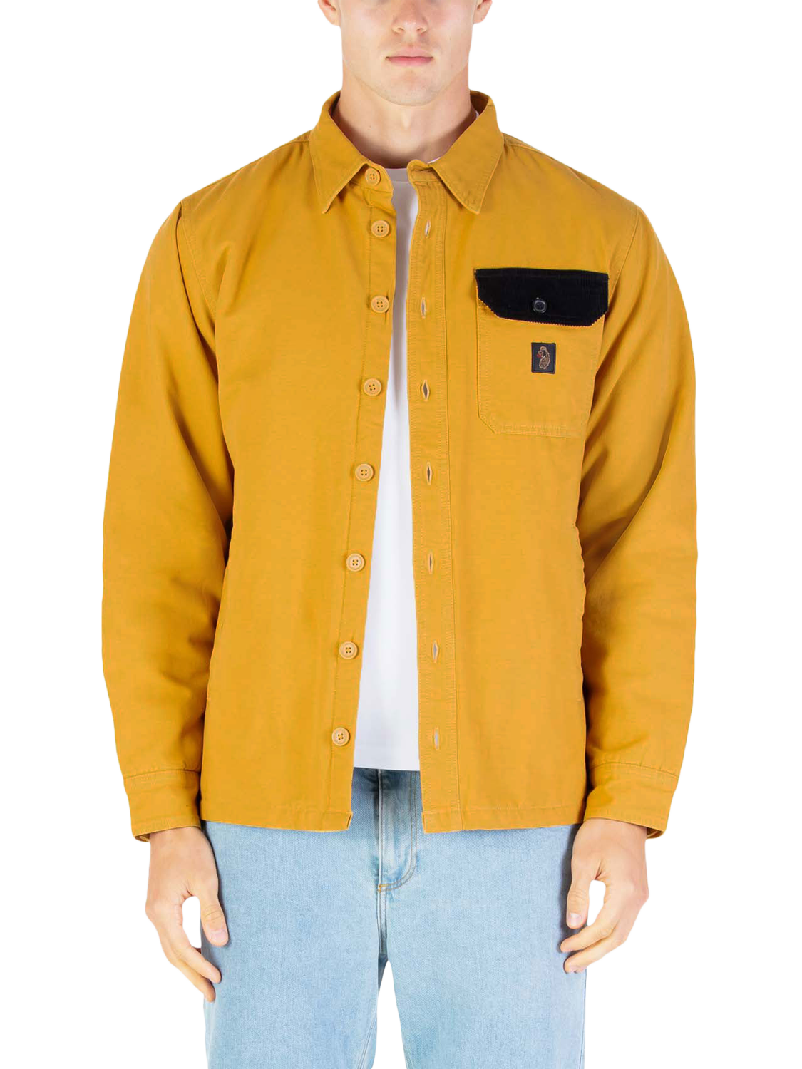Inspired by traditional American workwear, LUKE introduces this expertly crafted shacket. Constructed from a sturdy cotton, it s styled with a chest pocket which a cord pocket flap. It is then complete with the brand s iconic lion head woven badge on the pocket.