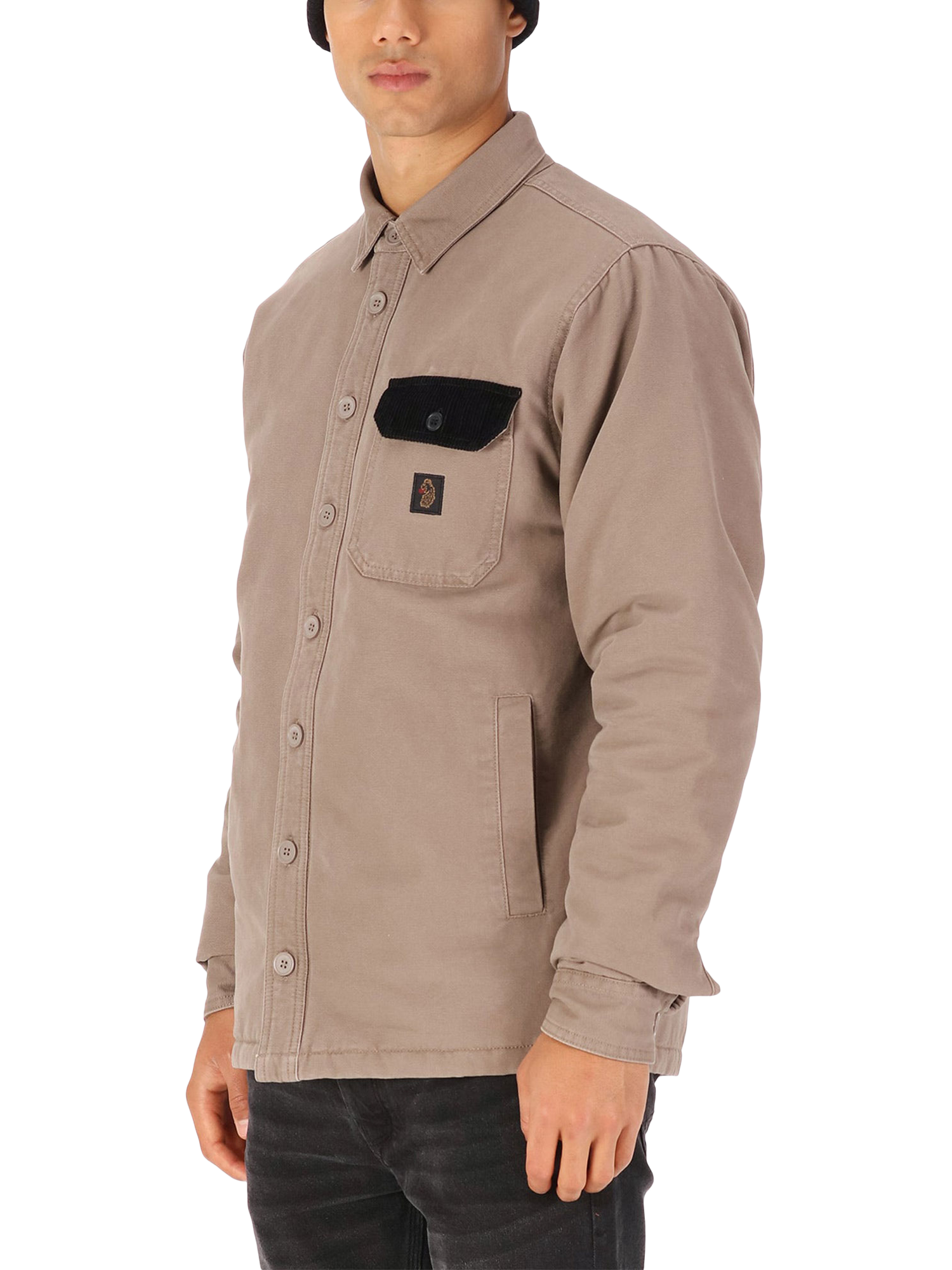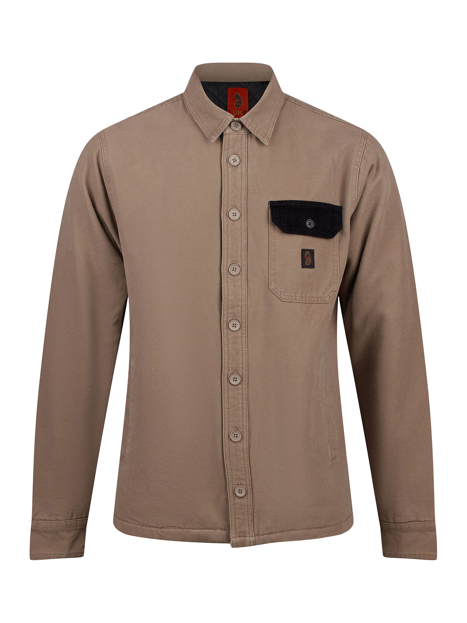 Inspired by traditional American workwear, LUKE introduces this expertly crafted shacket. Constructed from a sturdy cotton, it s styled with a chest pocket which a cord pocket flap. It is then complete with the brand s iconic lion head woven badge on the pocket.