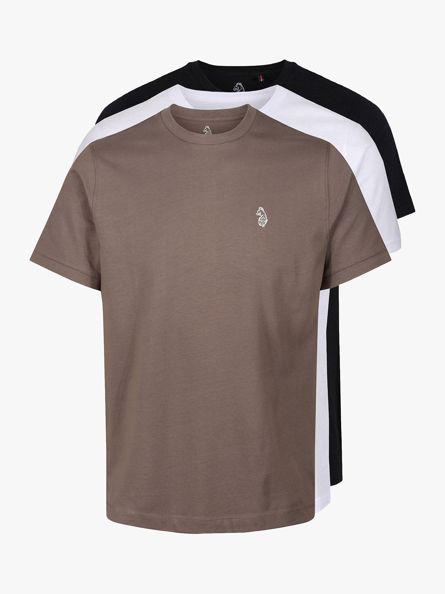LUKE 1977Johnys Crew Neck T-Shirt, Pack of 3, Black/White/Mushroom, M