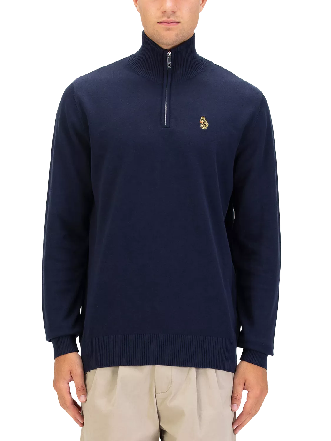 LUKE 1977Pretender Half Zip Cotton Jumper, Dark Navy