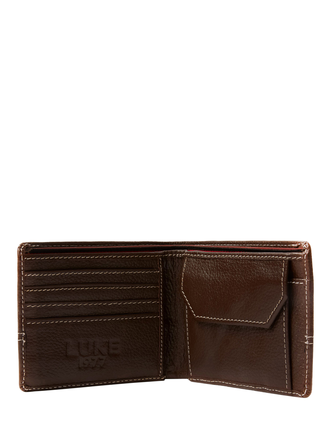 This premium wallet from LUKE has multiple card slots, a note sleeve at the interior, along with a coin section which is secured with a press stud. This wallet is detailed with contrast stitching and the brand’s iconic matte black lion head rivet on the front.