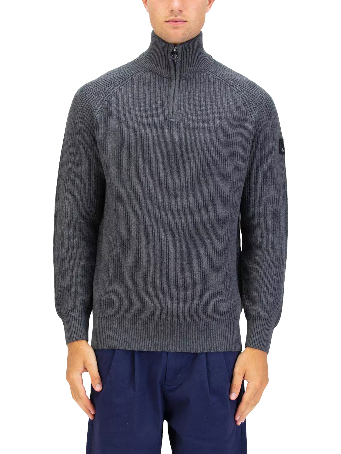 A funnel neck quarter zip knit jumper from LUKE, crafted from a soft pure cotton knit and detailed with a comfortable rib neck, cuff and hem. The look is complete with the brand's iconic LUKE EST. 1977 woven label on the left arm, as well as the iconic LUKE branded zip puller.