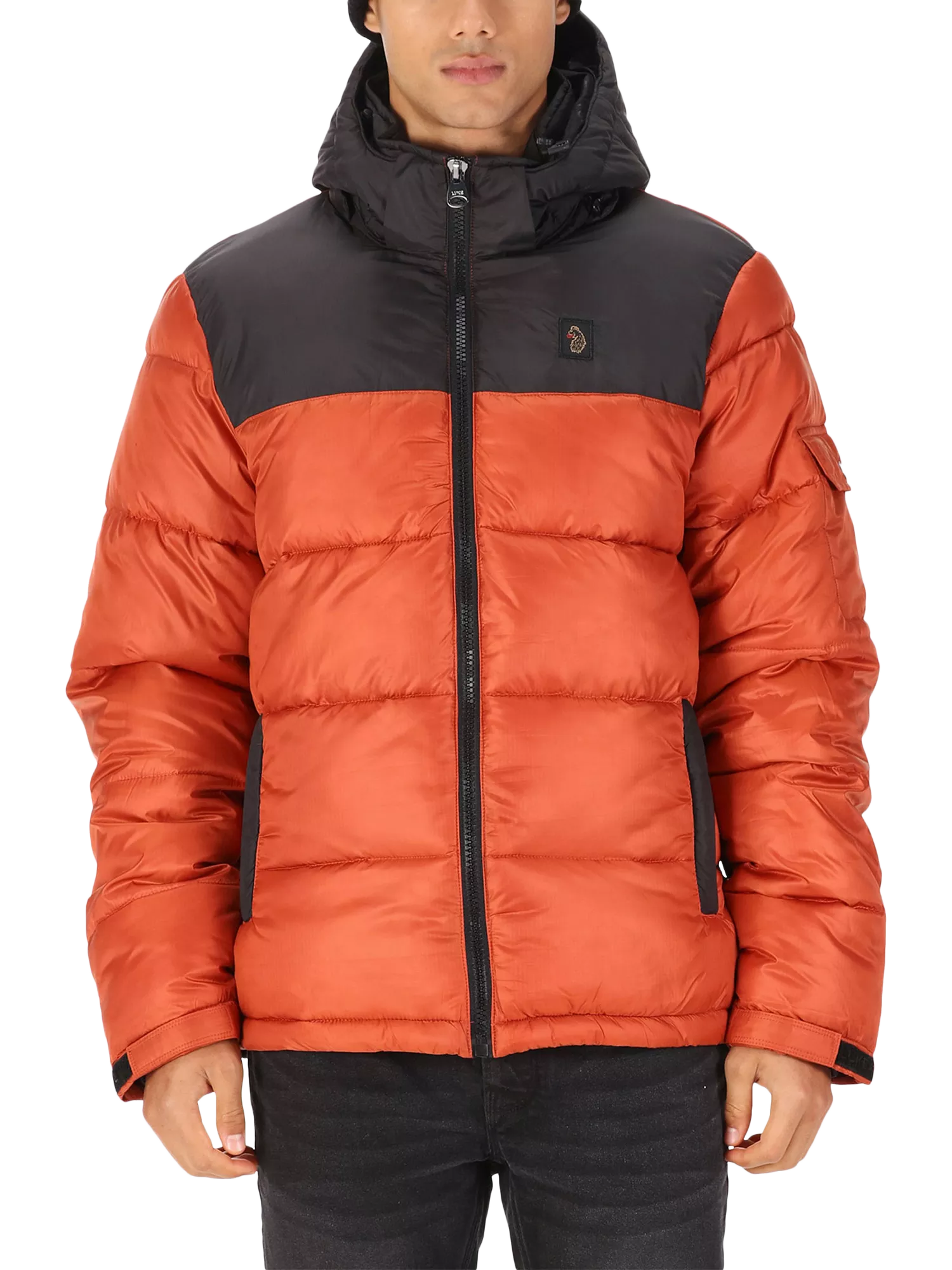 This padded jacket from LUKE is filled with recycled warming materials and features comfy rib cuffs and a detachable, adjustable hood, making it perfect for staying cosy when you're watching the match from the cold terraces. It is detailed with dark pewter gloss zip pullers, handy lower front zip pockets and is fitted with a LUKE 1977 repeat print lining throughout.