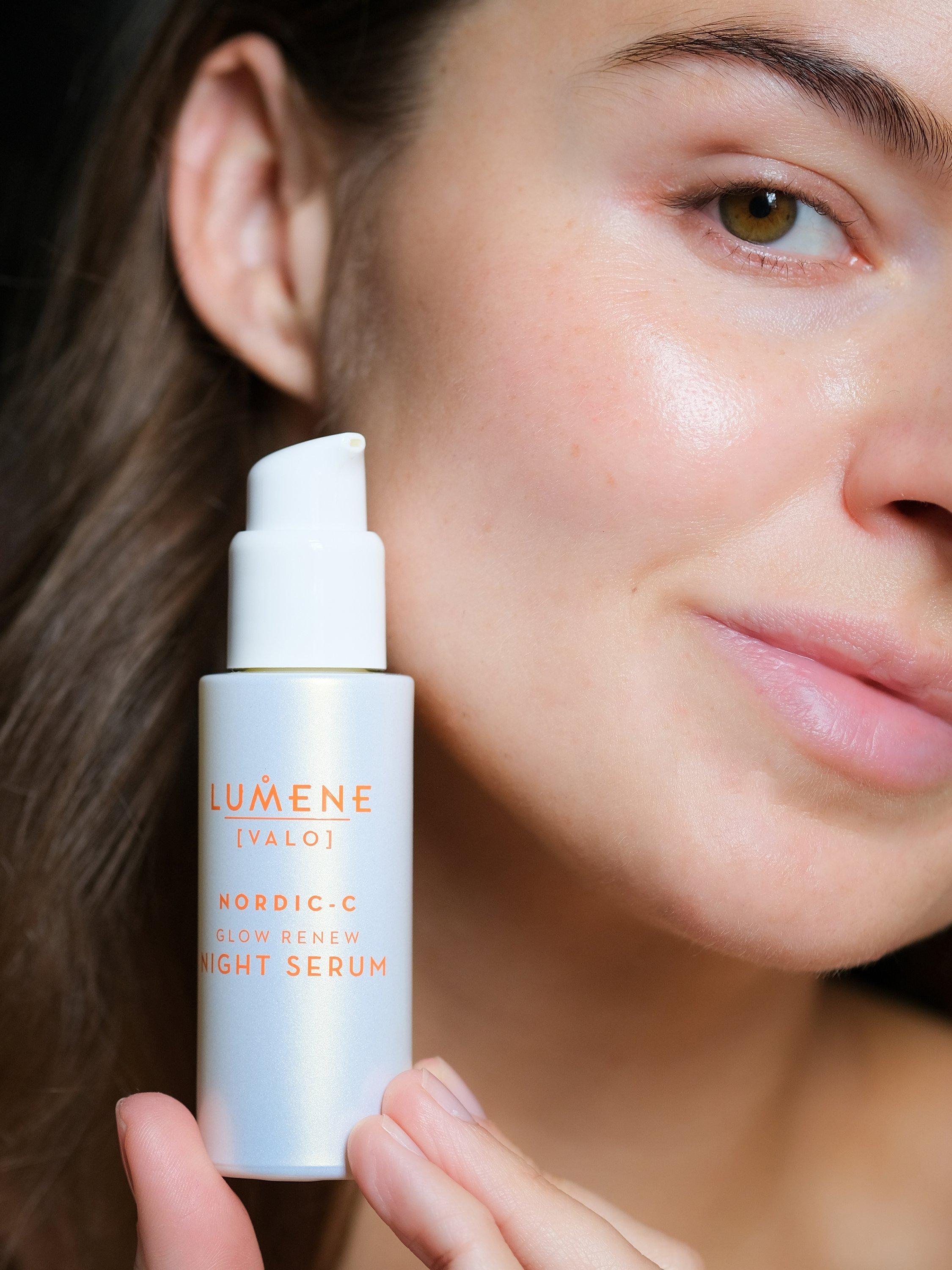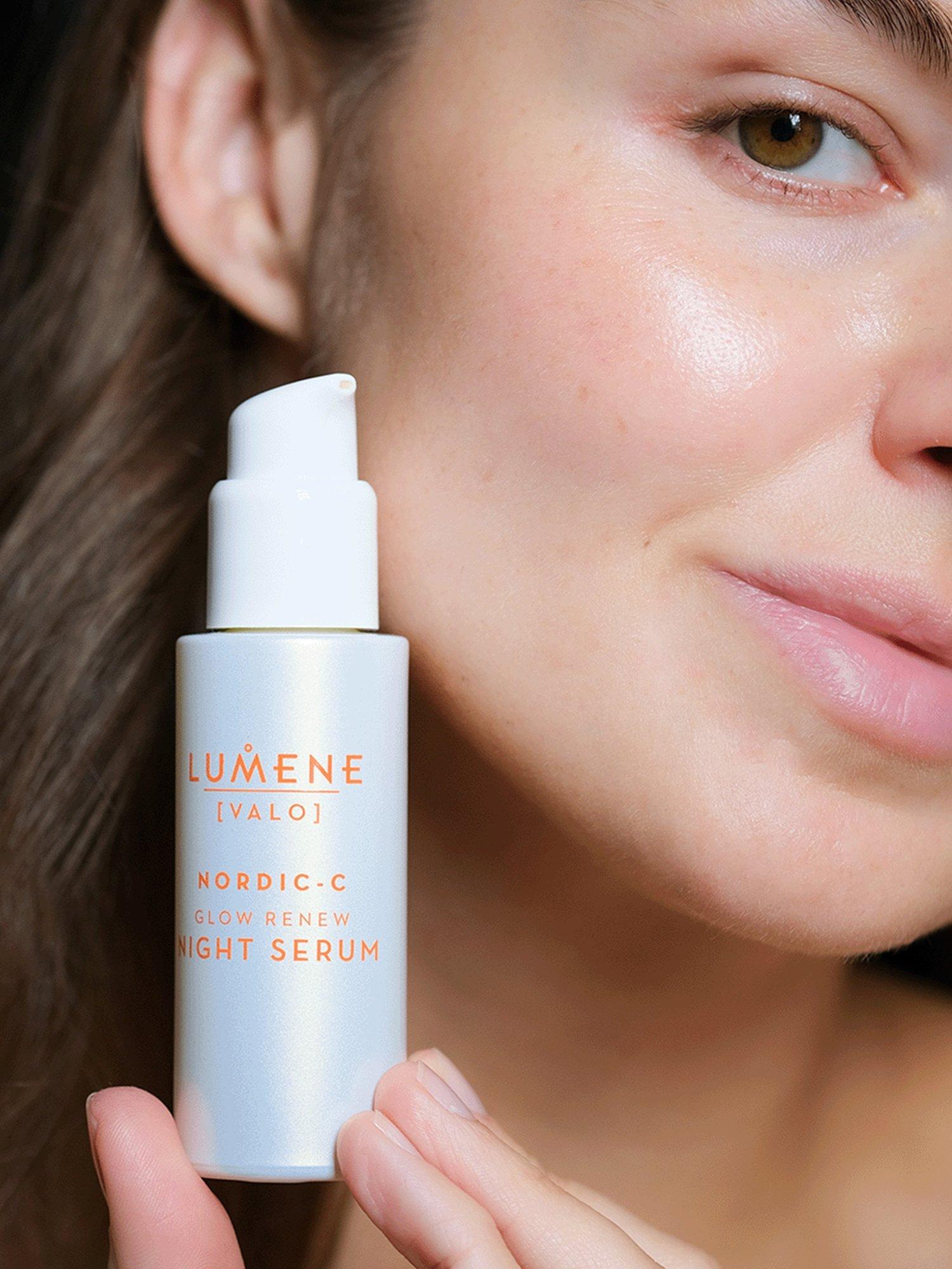 Naturally peeling AHAs from fermented Arctic cloudberry and gentle PHA are combined with brightening vitamin C and Arctic cloudberry extracts in a caring milky texture to leave skin looking radiant by morning. Renew glow in 7 nights.