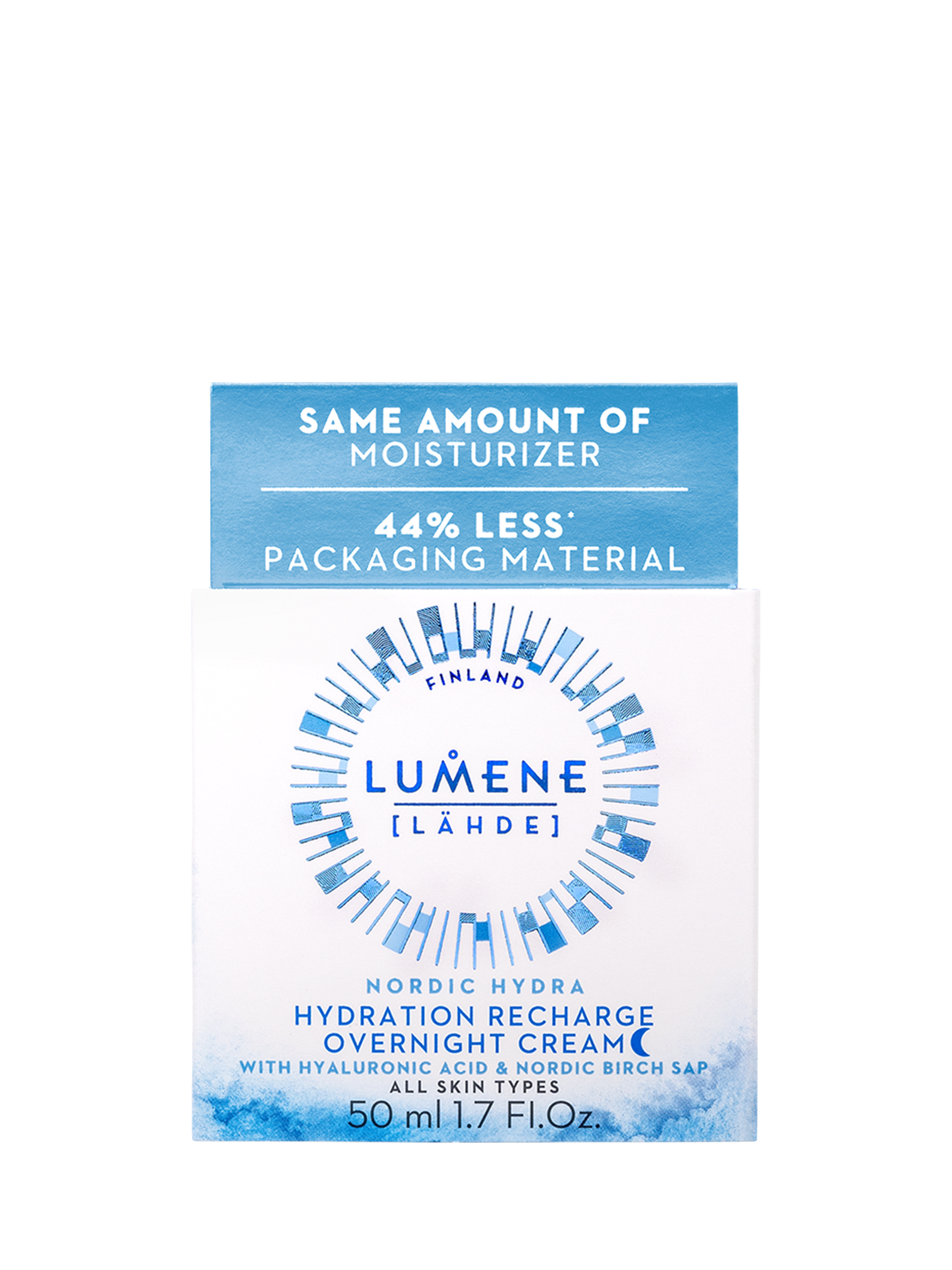 New! For smaller environmental impact**, this moisturiser now comes in a lightweight and compact biobased plastic 50ml jar. Same amount of your favourite moisturiser – 44% less packaging material compared to previous Lumene 50ml moisturiser jar. The jar is recyclable, sort as plastic.