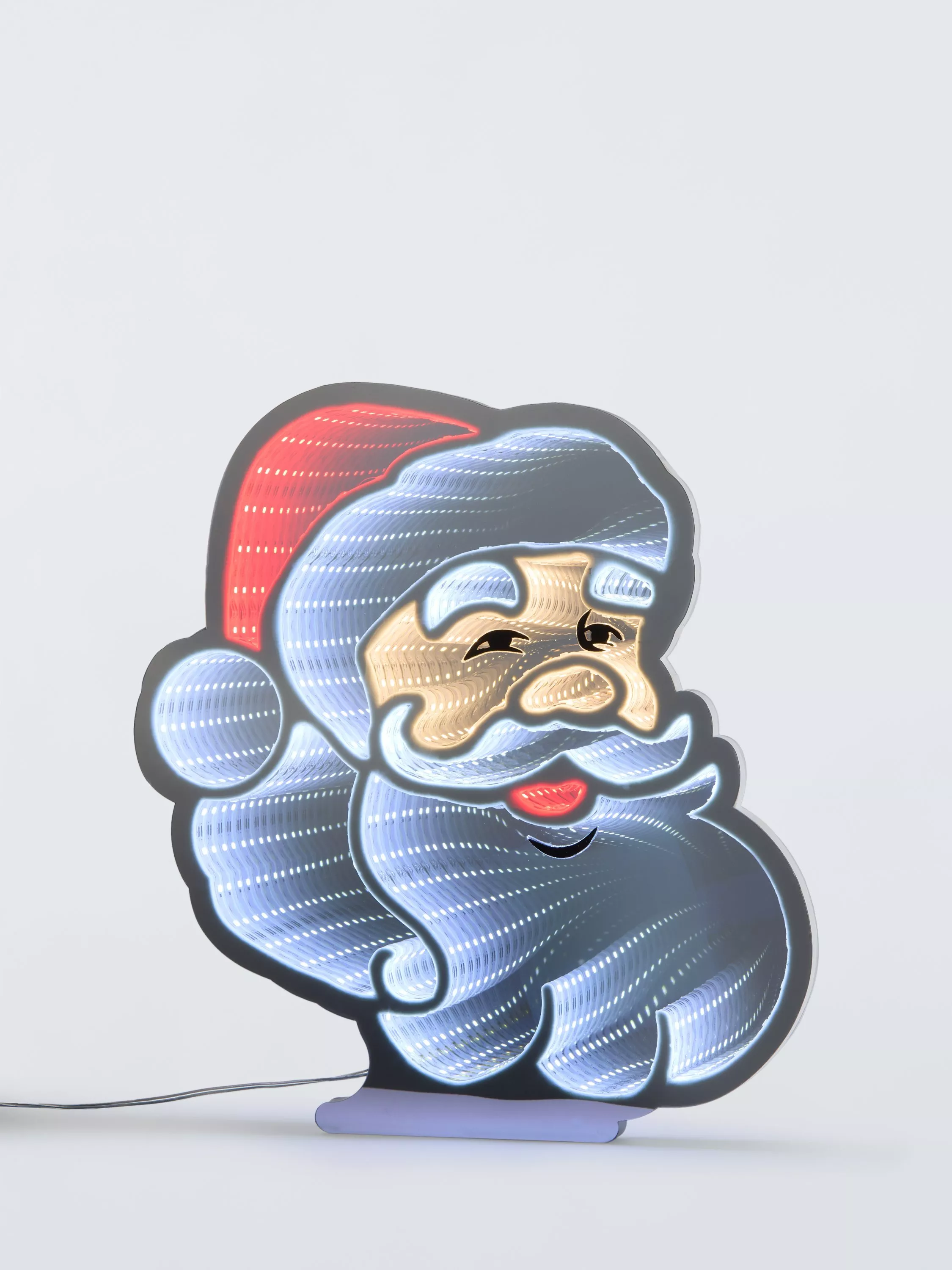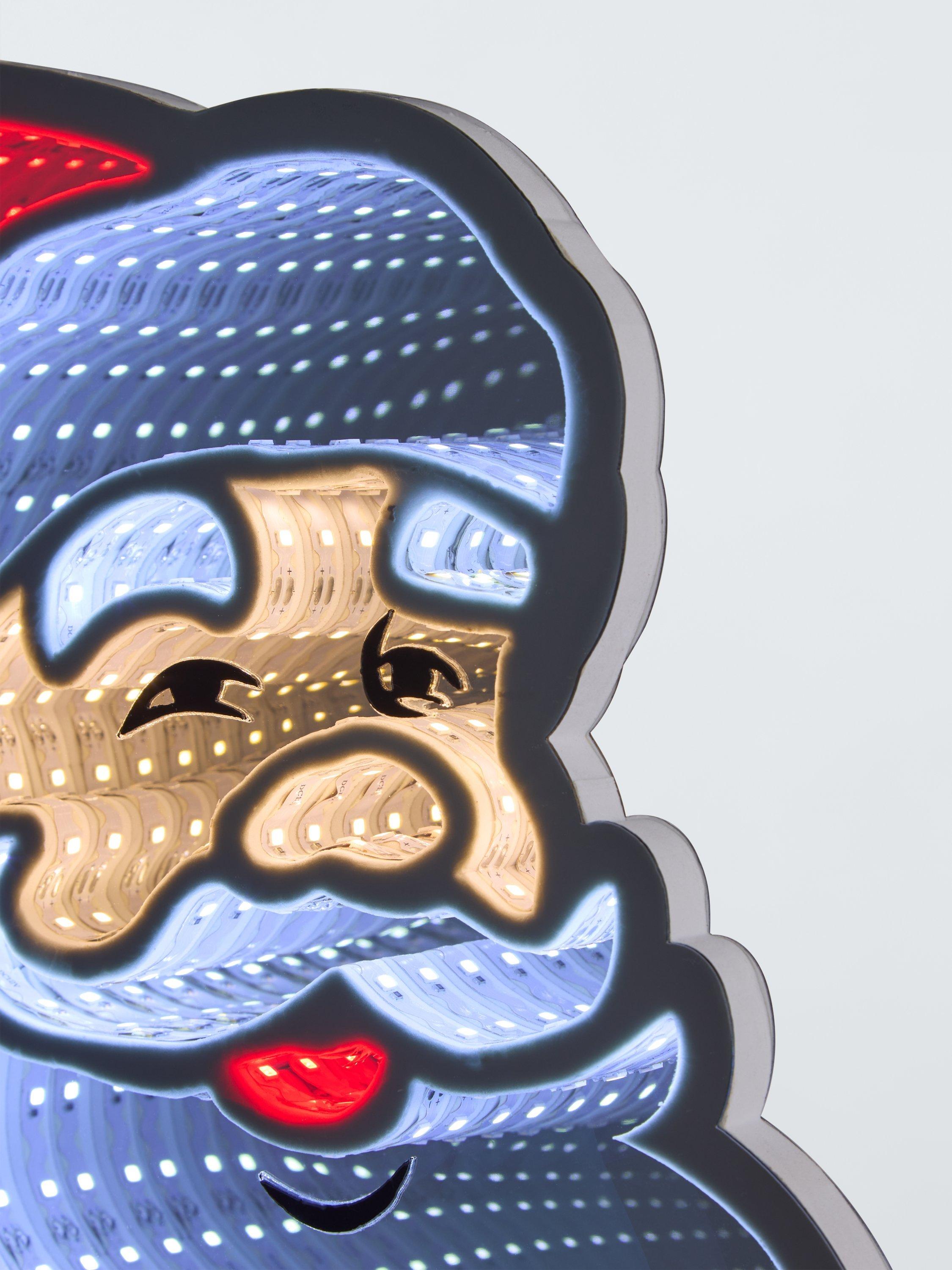 This beautifully designed Santa infinity light offers a steady multi-colour LED display ideal for creating a festive atmosphere. It comes with a transparent cable and an 8-metre lead, ensuring easy setup.