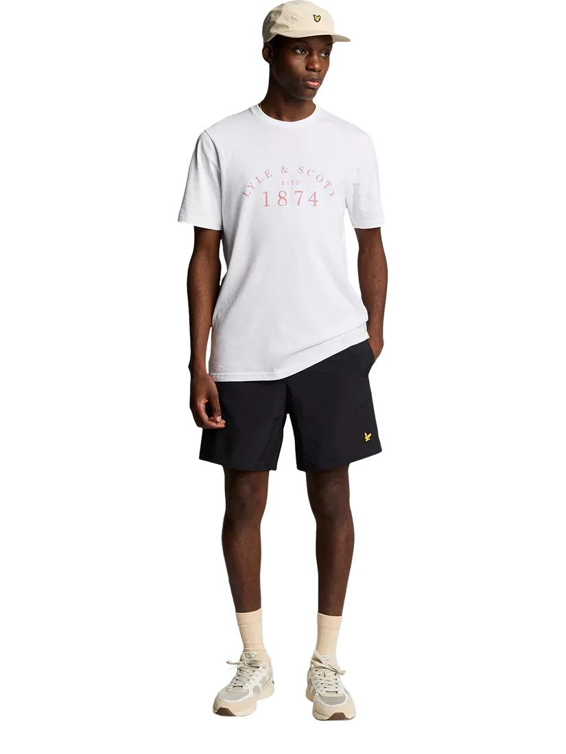 Plain in design with simple signature eagle detailing, these sporty swim shorts from Lyle & Scott feature an elasticated drawstring waist and pockets.