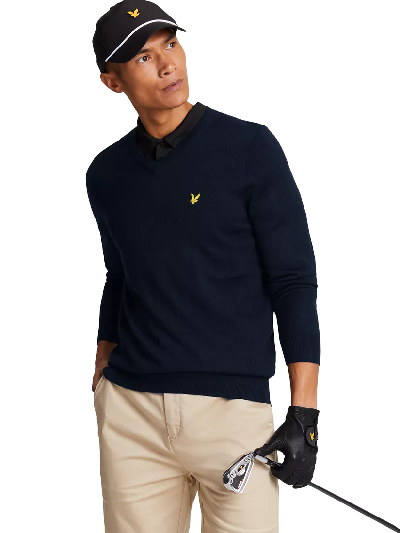Lyle & ScottGolf Wool Blend V-Neck Jumper, Dark Navy