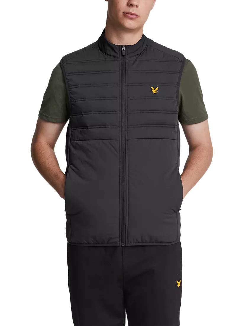 Layering up on cooler days, this hybrid double baffle gilet from Lyle & Scott is made from a durable quilted fabric and zips through the front.
