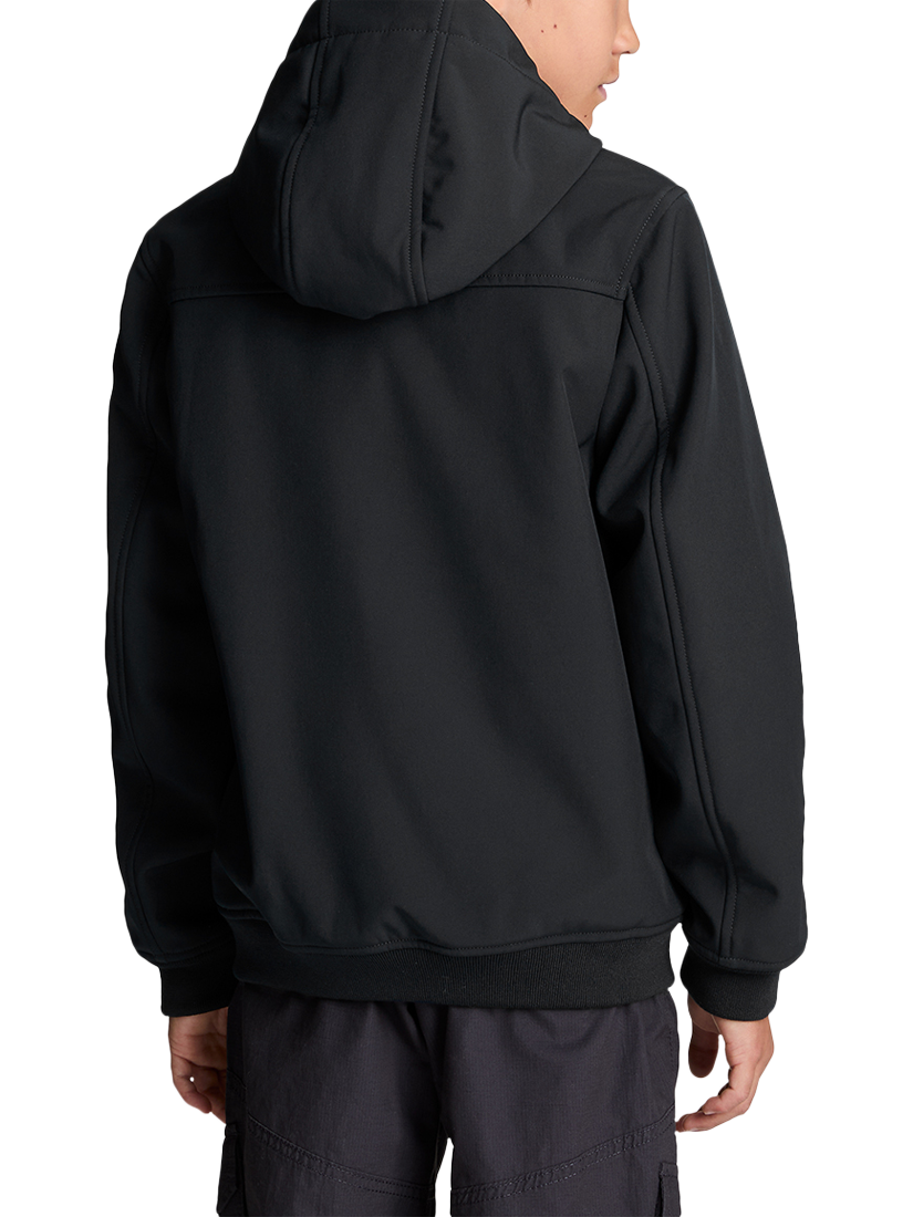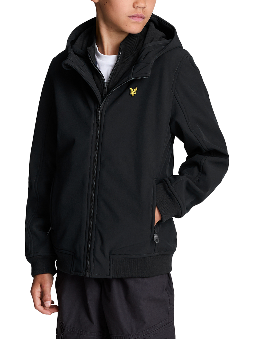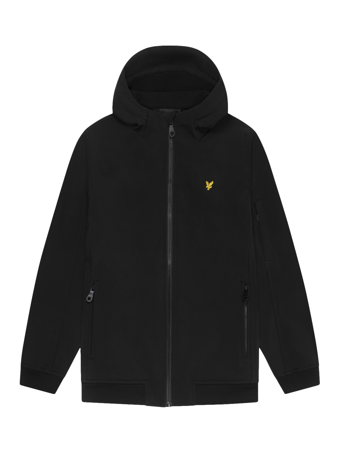 Pulling on for additional warmth, this soft shell jacket from Lyle & Scott features a hood, pockets and a zip-through front.