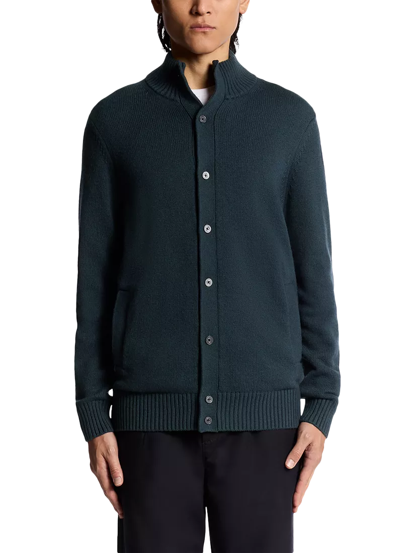 A funnel neck cardigan from Lyle & Scott that lends itself to layering thanks to its lightweight cotton-blend construction.