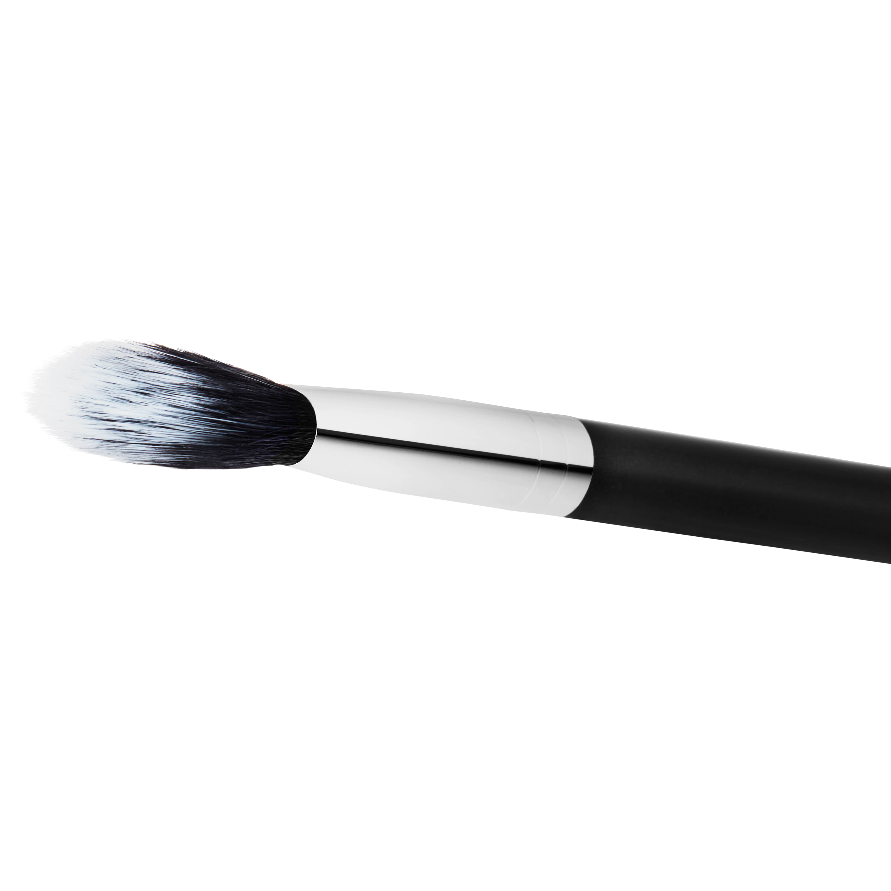 A small rounded, double-chiseled, paddle-shaped blush brush for the smooth, refined application of powders and creams to shade, blush and highlight the face.