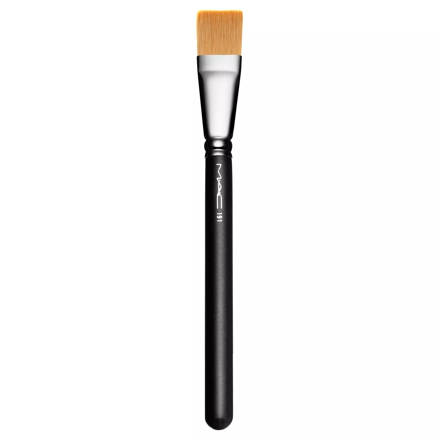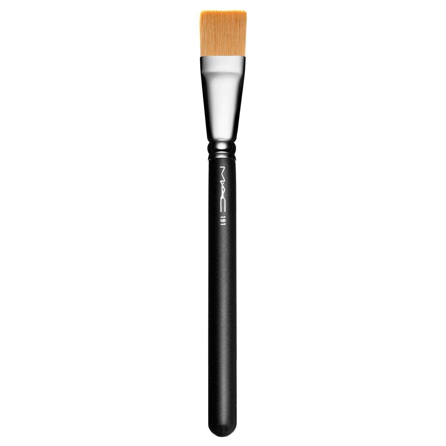 A large, flat, square-shaped synthetic-fibre brush with a fine firm edge for distribution and blending of liquid, emulsion or cream products on the face or body.