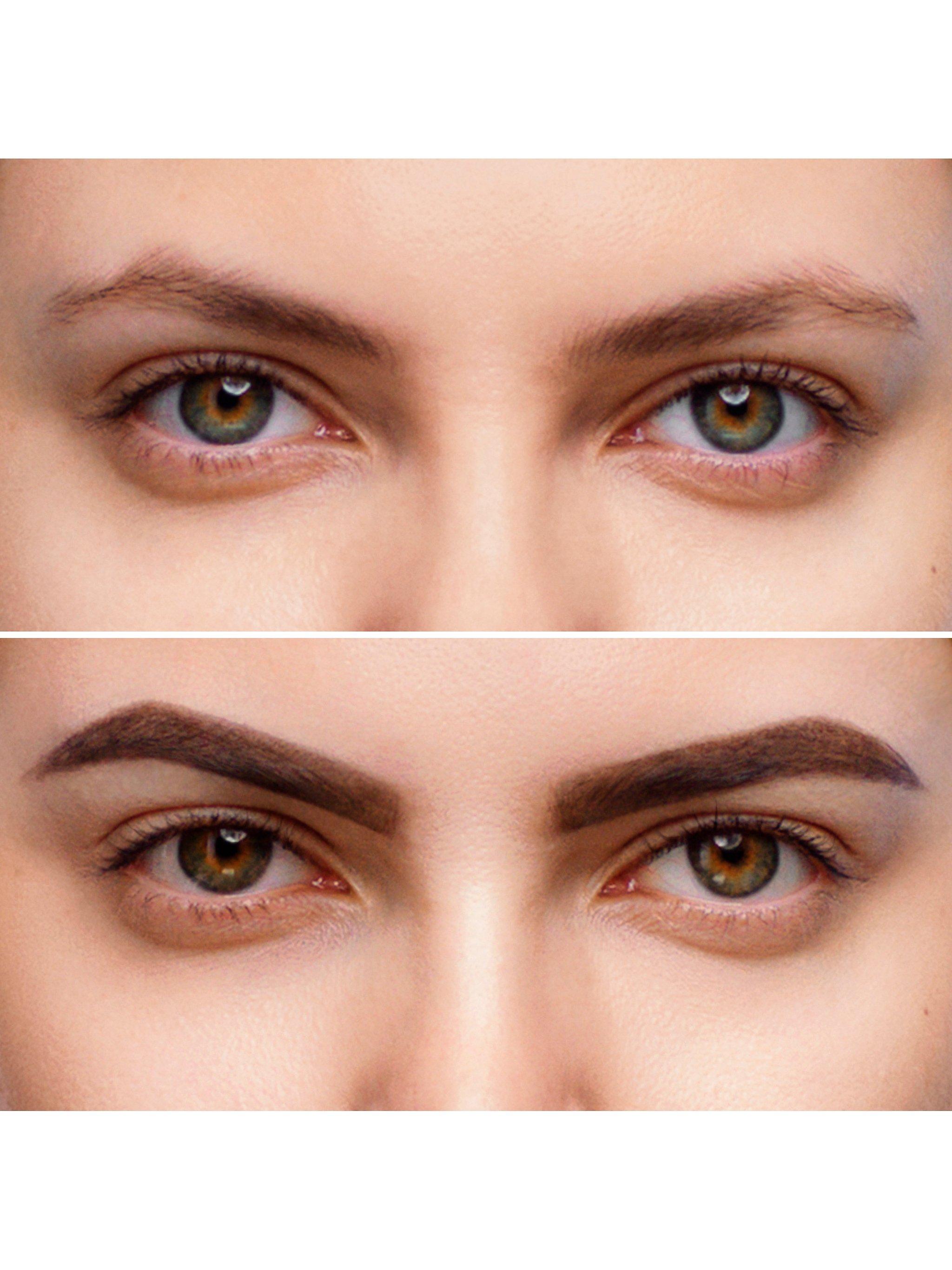 A liquid brow liner on one end effortlessly fills in sparse brows with strokes of sheer, buildable colour while a sponge tip on the other end neatly distributes tinted powder, shading and setting the entire brow in place for hours of waterproof wear.