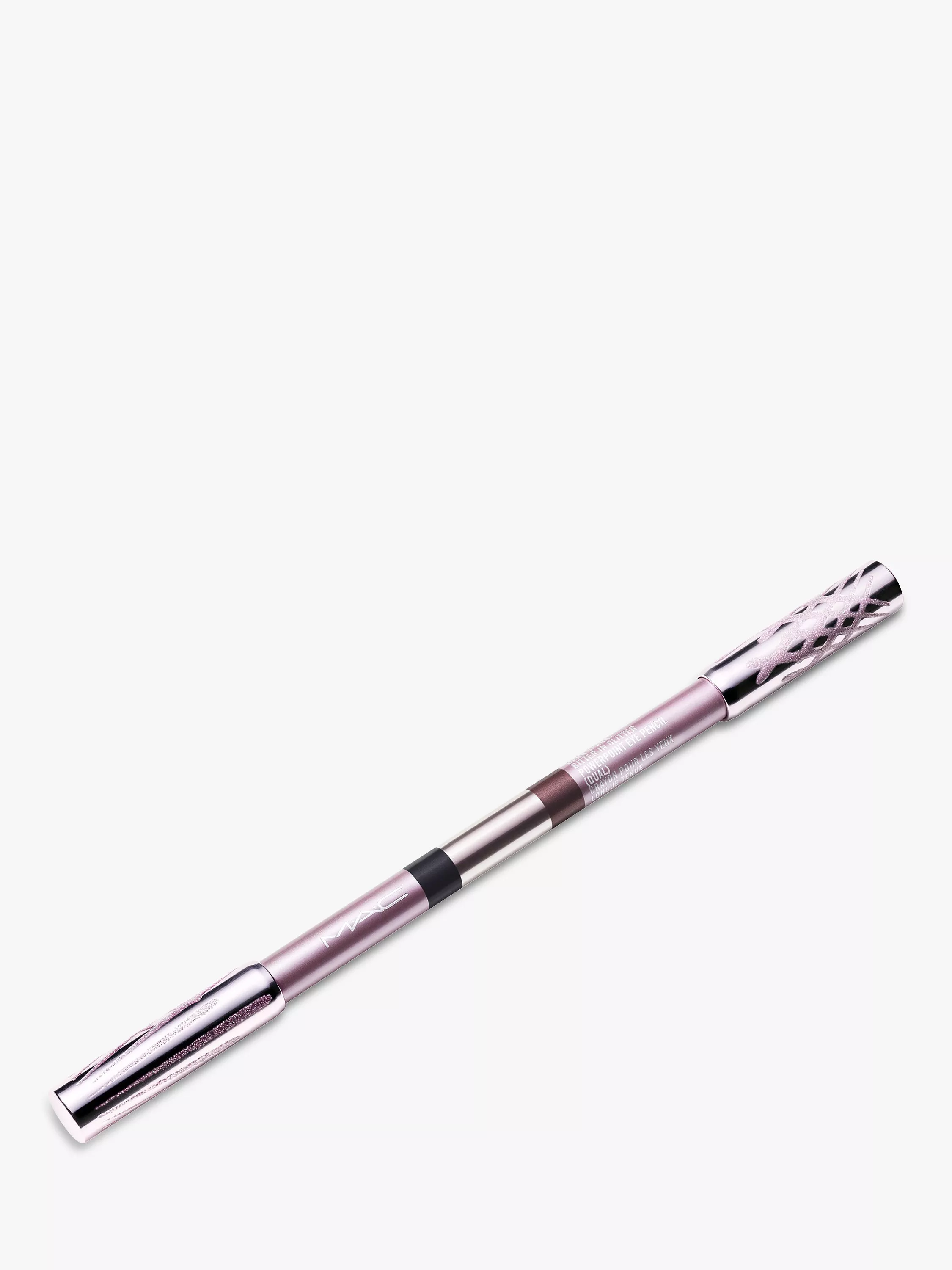 A burst of three dual-ended waterproof, long-wearing, holiday-exclusive Powerpoint Eye Pencil shades in pearlescent an dmetallic finishes. Smooth to apply. Won't transfer, smudge or budge. Draws the line. Powers your eyes. Makes its point. Lasts and lasts. All wrapped in specially designed, flare-embossed, frosted-pink packaging.
