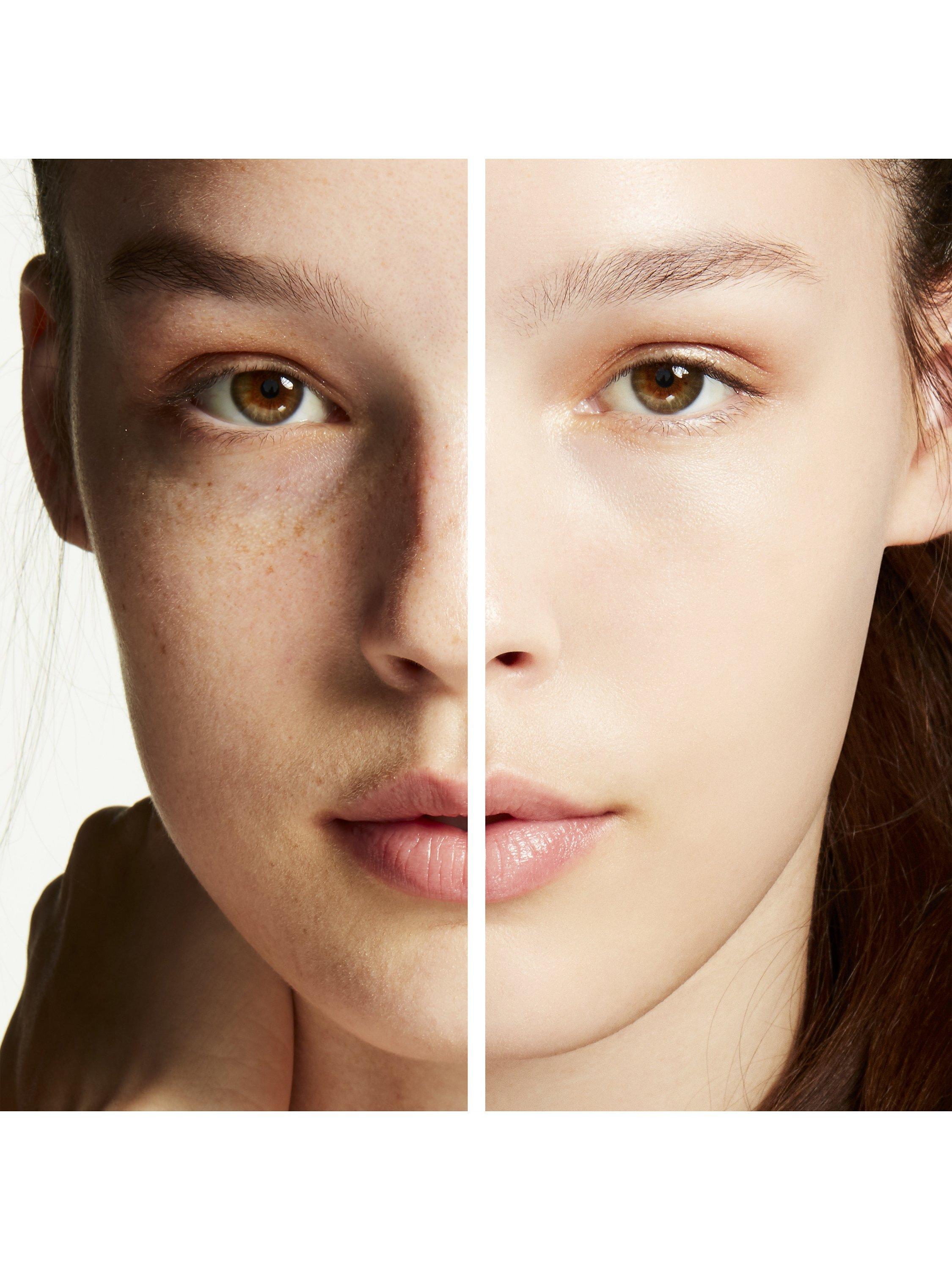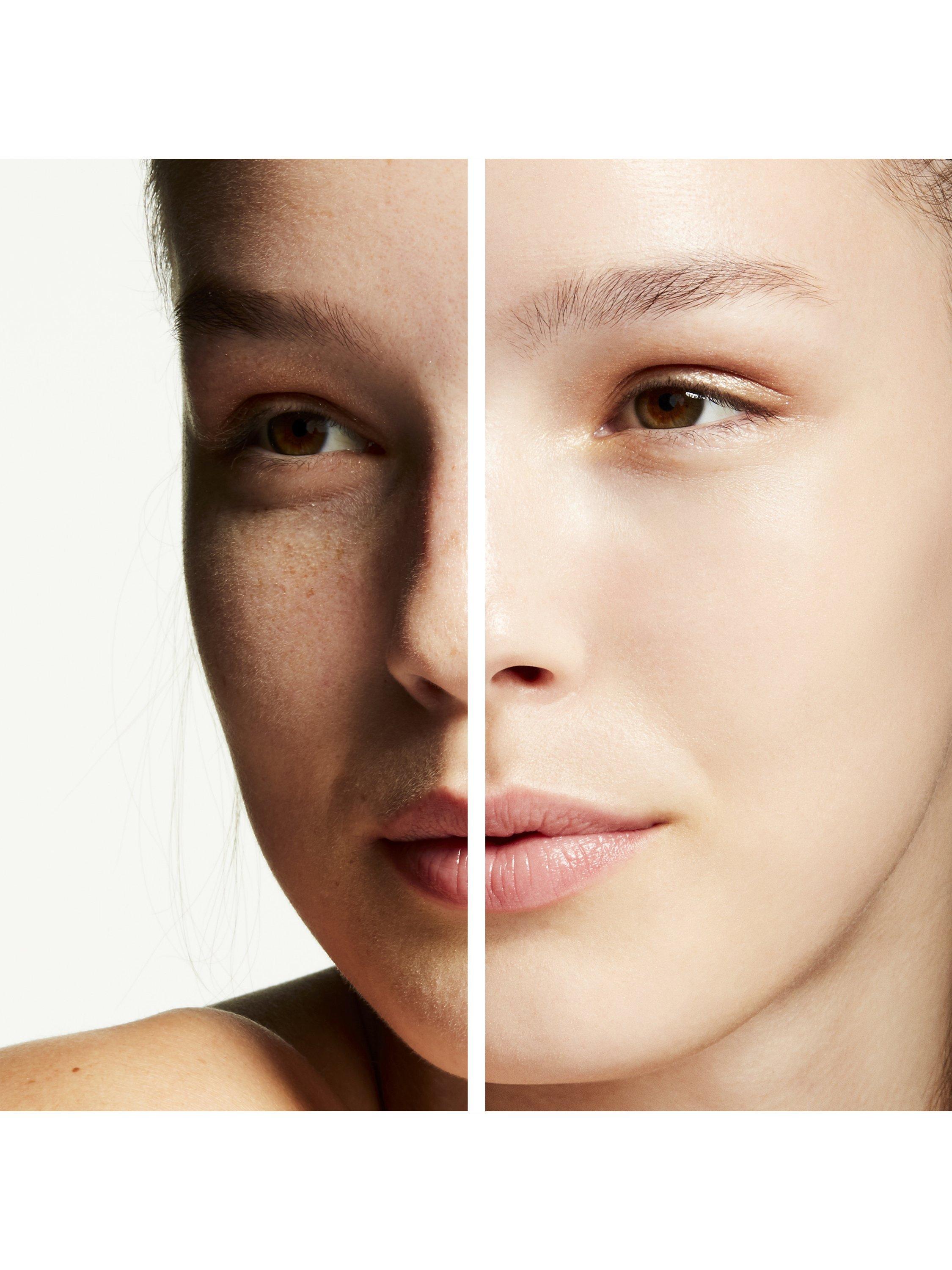 Vitamins E and C protect with antioxidants, while caffeine calms and reduces redness. Illuminating pearl powders reflect optic brightening.