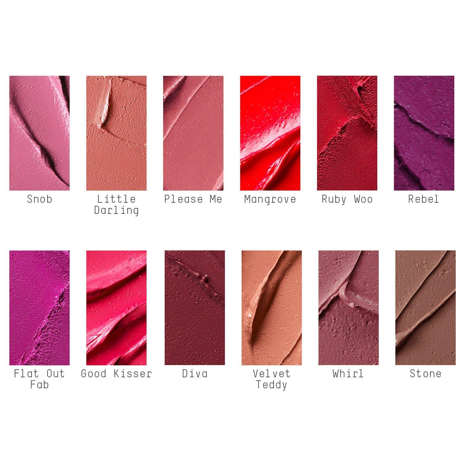 - Ruby Woo, Very matte vivid blue/red