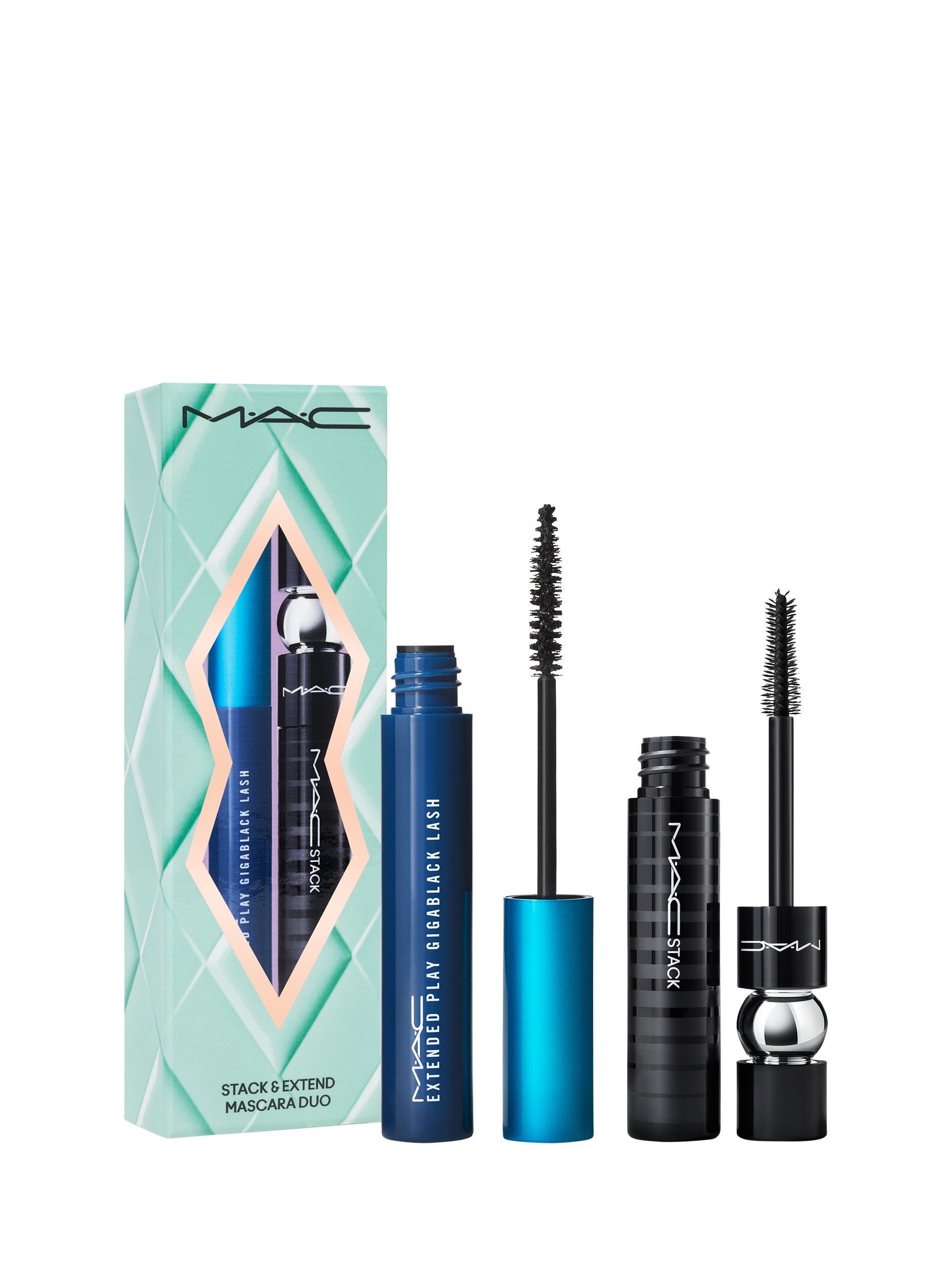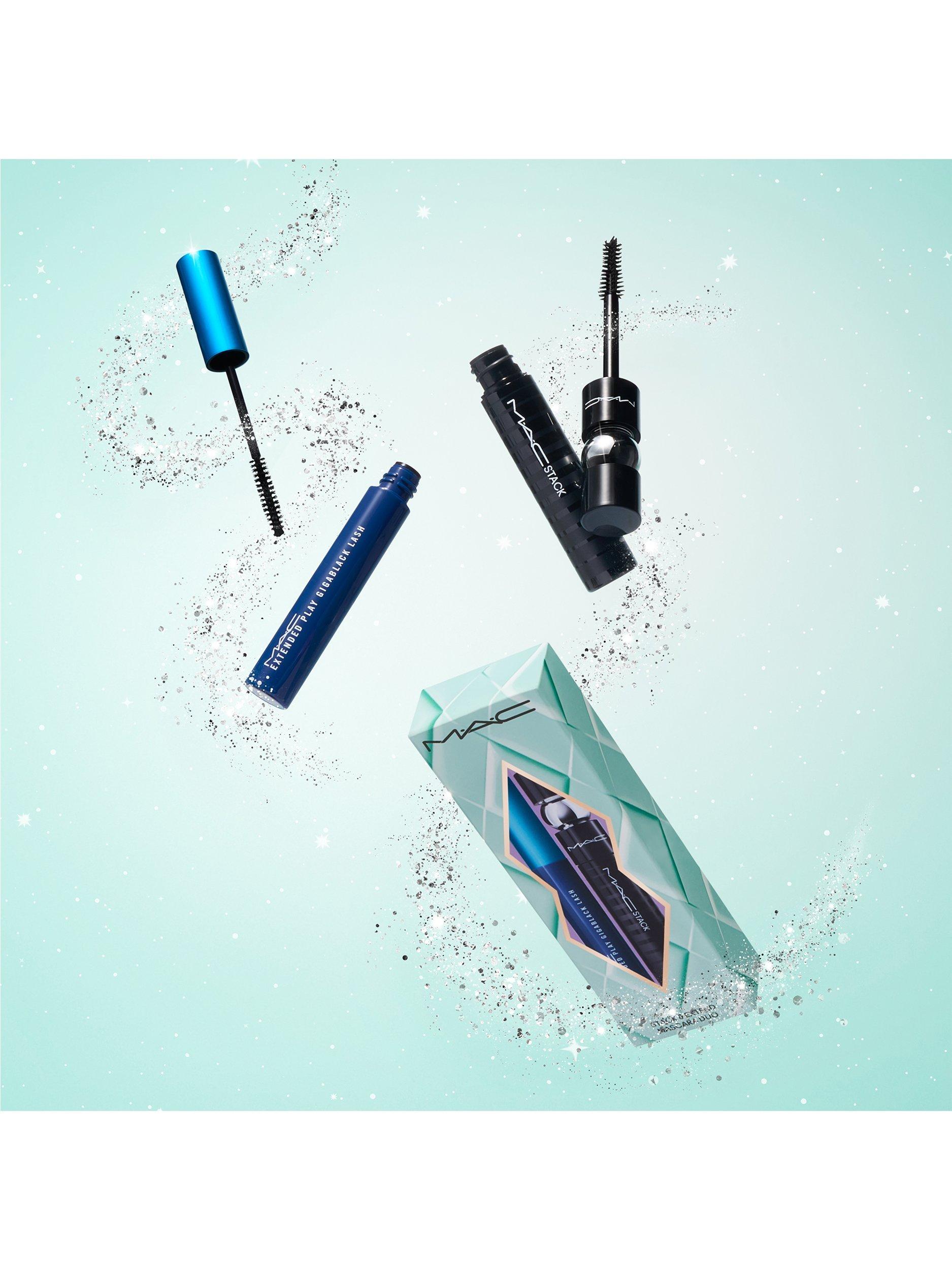 Stack your lashes to new heights for the holidays with a giftable, limited-edition duo of best-selling, full-sized MACStack Mascara and Extended Play Mascara in Gigablack.