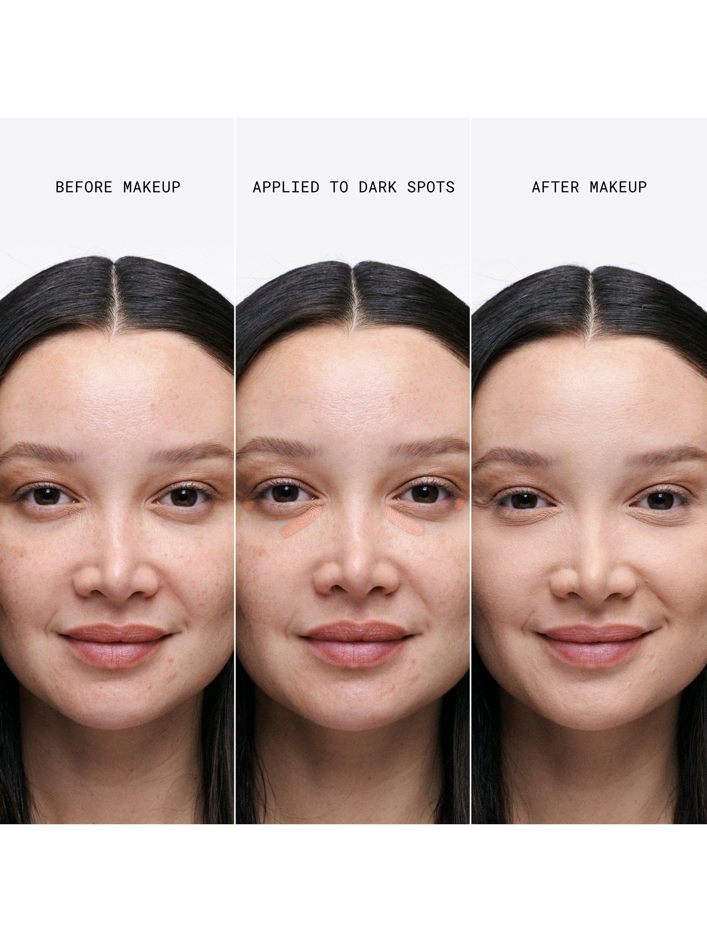 - Peach: Corrects the look of dark spots, dark undereye circles and dull areas. Balances blueish/purple tones under the eyes or grey areas on the face by adding warmth. Ideal for light to medium skin tones