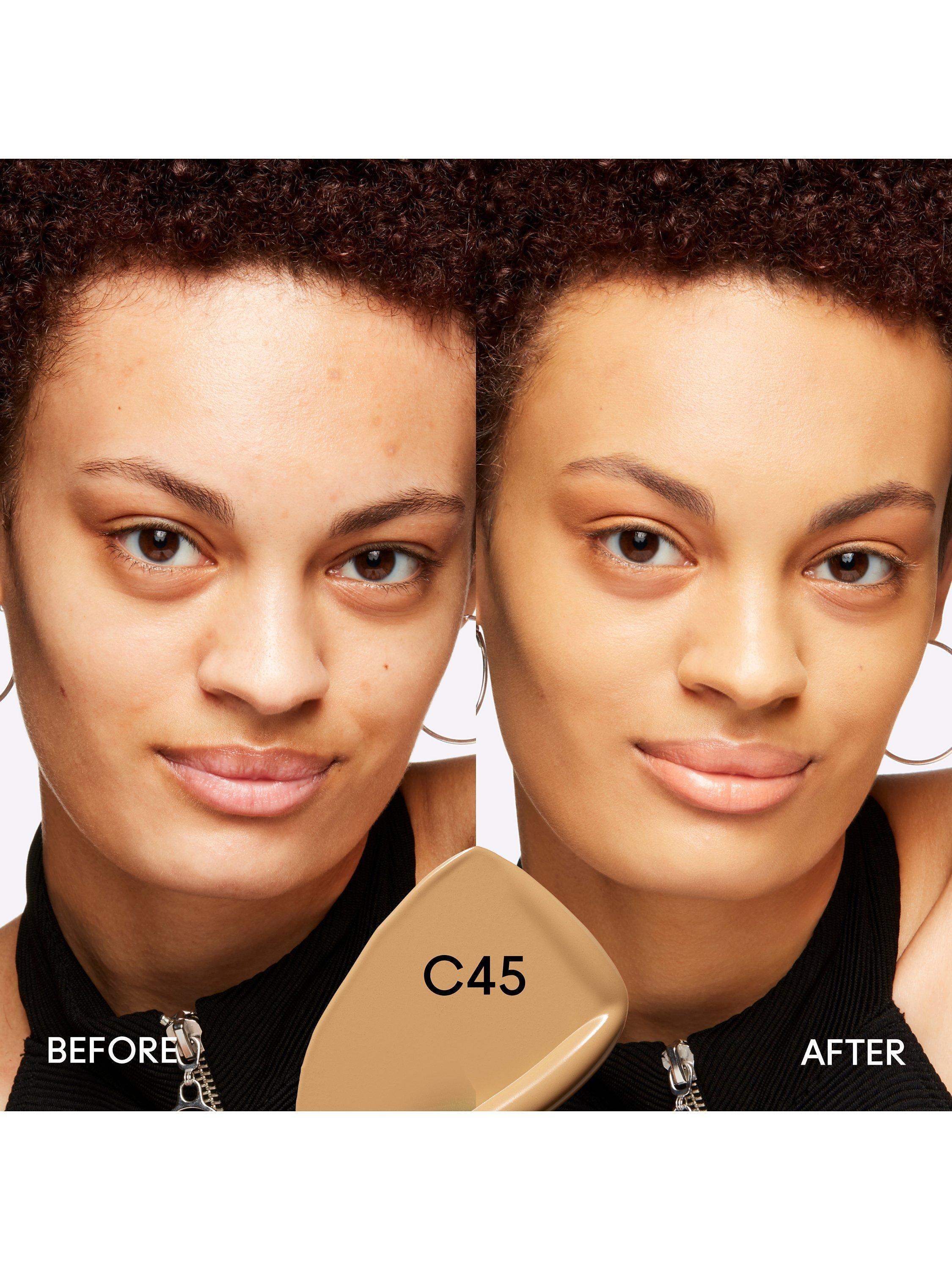 With new Pro Fluid Technology™ for a more natural-looking coverage that looks and feels like skin. A special pigment treatment process to increase the amount of pigment while staying thin, blendable and fluid. Moves with your skin for more natural-looking coverage.