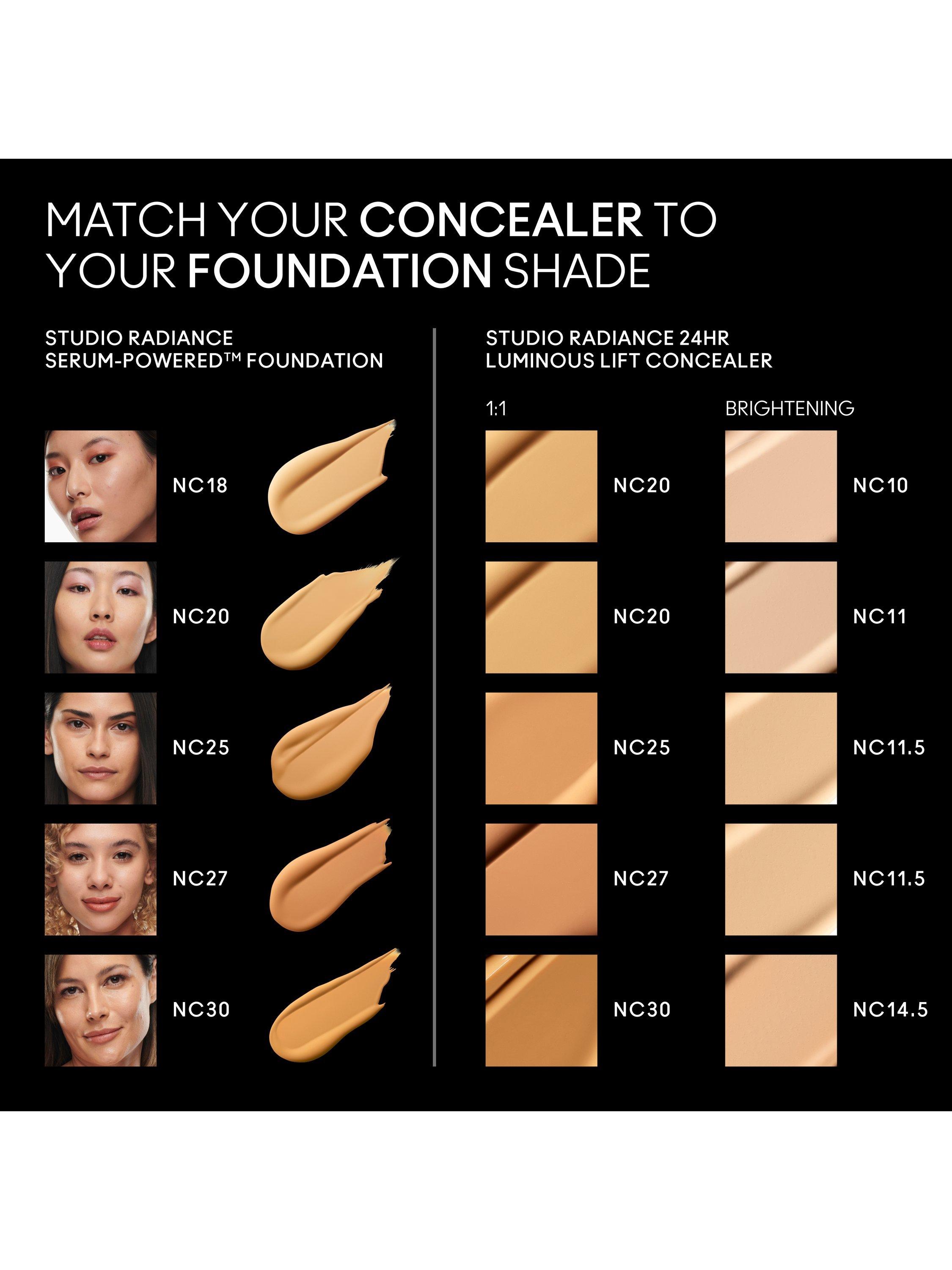 Studio Radiance 24HR Luminous Lift Concealer features an Artist-Curated Radiance Blend, made from silver and gold pearlescent particles specifically crafted to complement unique undertones of light and rich skin.