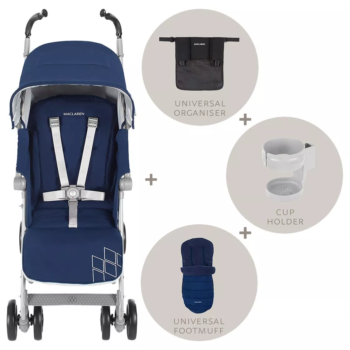 - Includes: Universal Footmuff, Universal Organiser, Cupholder and Premium Wind-Resistant Raincover