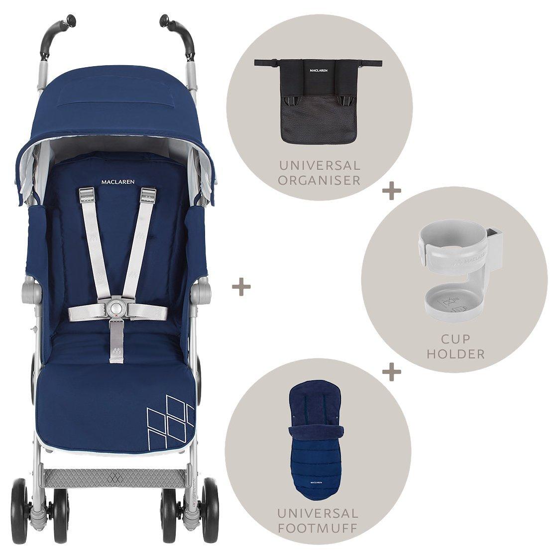 The Techno XT Winter Style Set in Medieval Blue is bundled with coordinating accessories, personally curated for you by Maclaren. This Style Set includes everything you need to keep your child cosy and protected through the winter. The flagship high-tech Techno XT buggy is styled with a Universal Organiser in black, Universal Footmuff in Medieval Blue and Cupholder in Silver – all at an exceptional value.