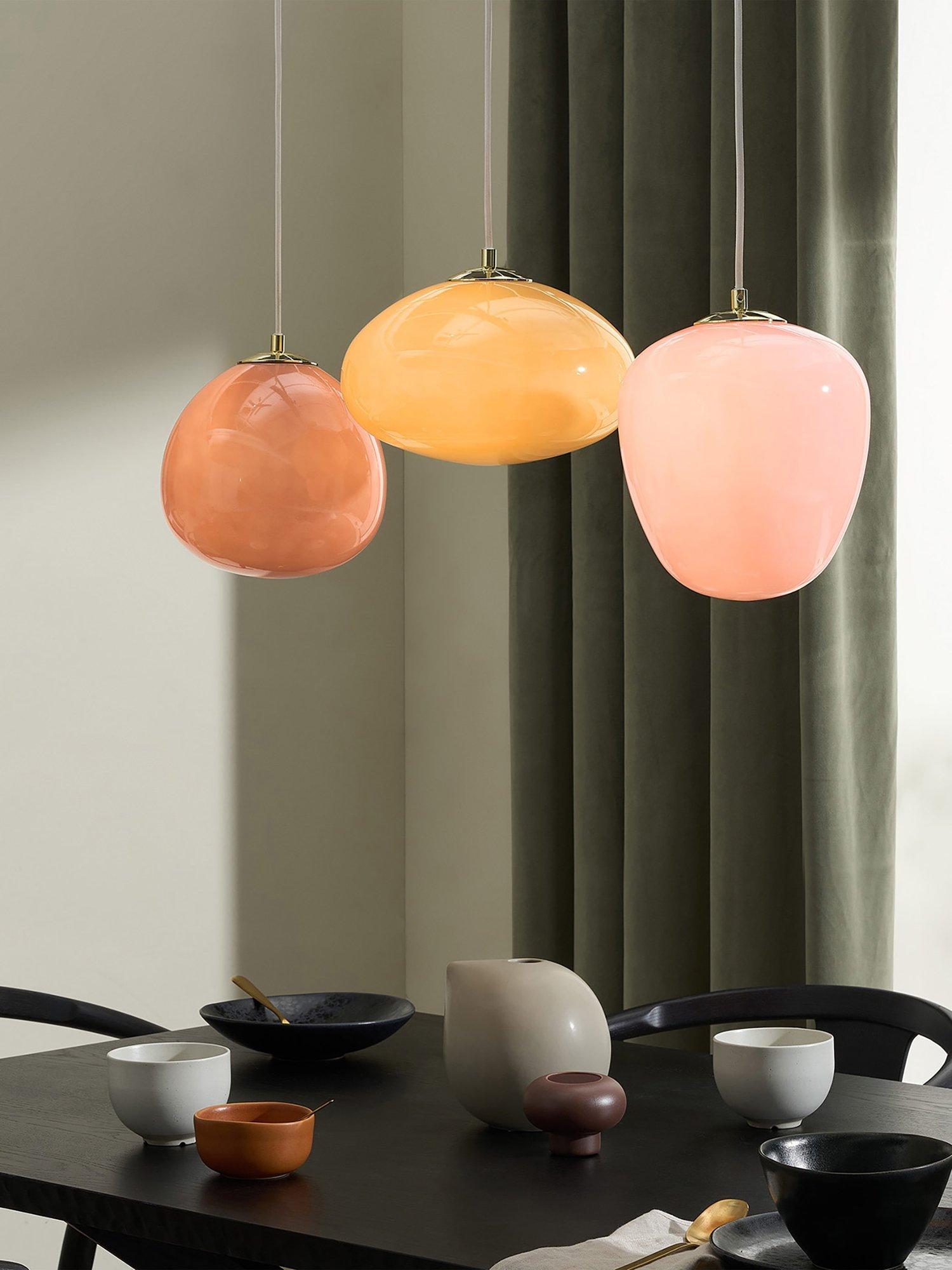 Invest in statement lighting with Adrienne. Showcasing the coloured glass trend with its multiple shades and shiny brass accents, this diner pendant is a total must-have.