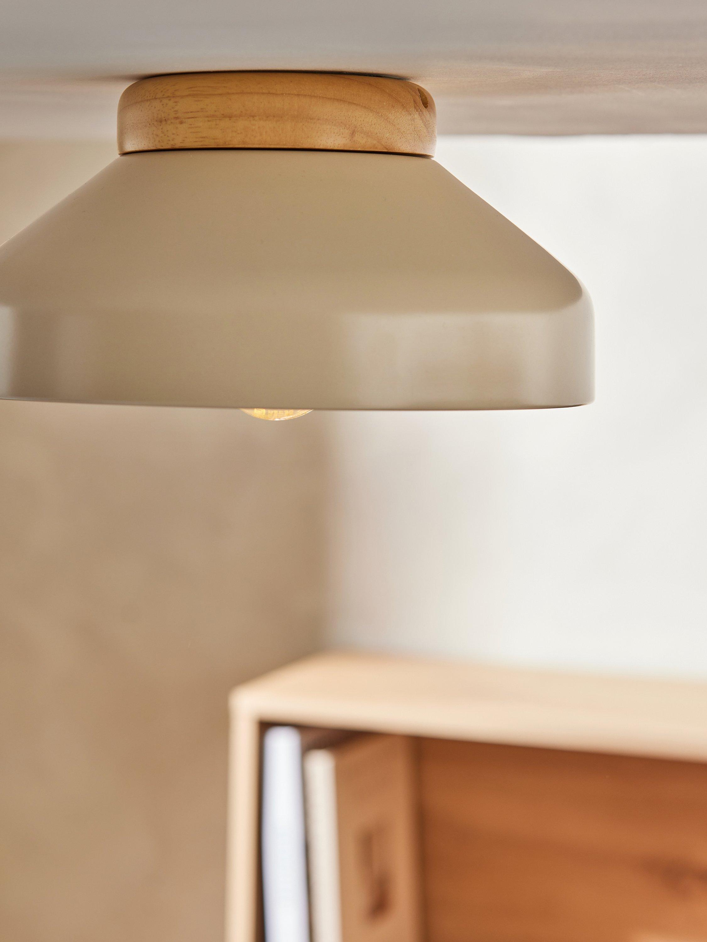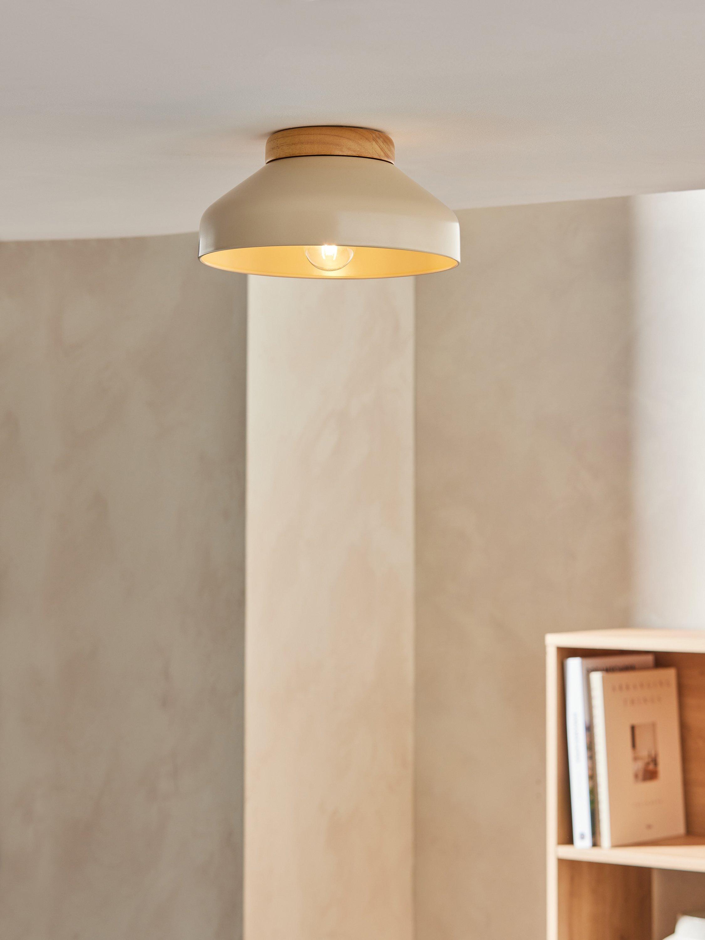 Create a clean, pared-back look with this flush ceiling light. A minimalist Scandi-inspired design with a wooden rose fitting. Its soft curves cast a warm pool of light over your favourite space. Great for rooms with low ceilings.