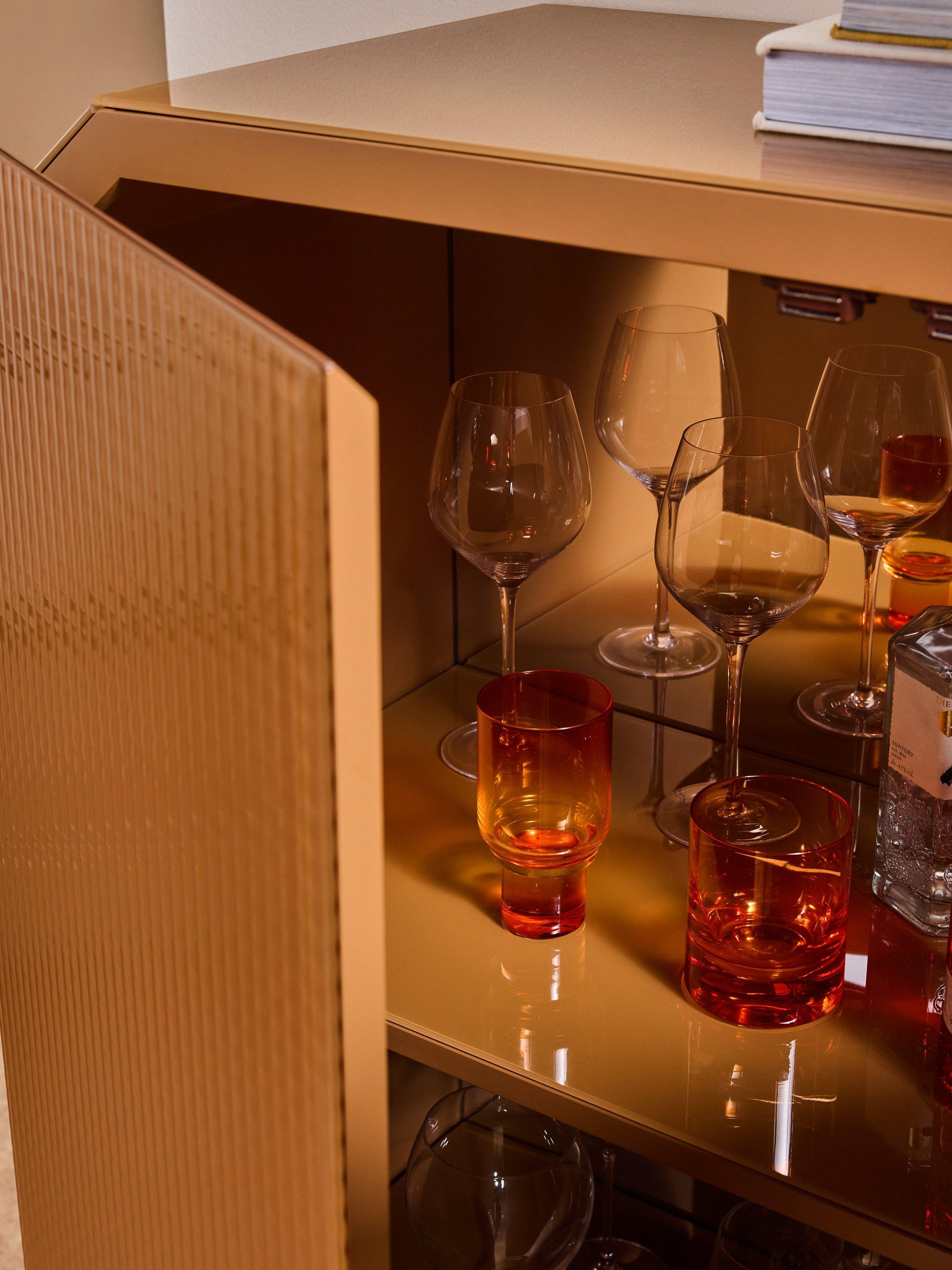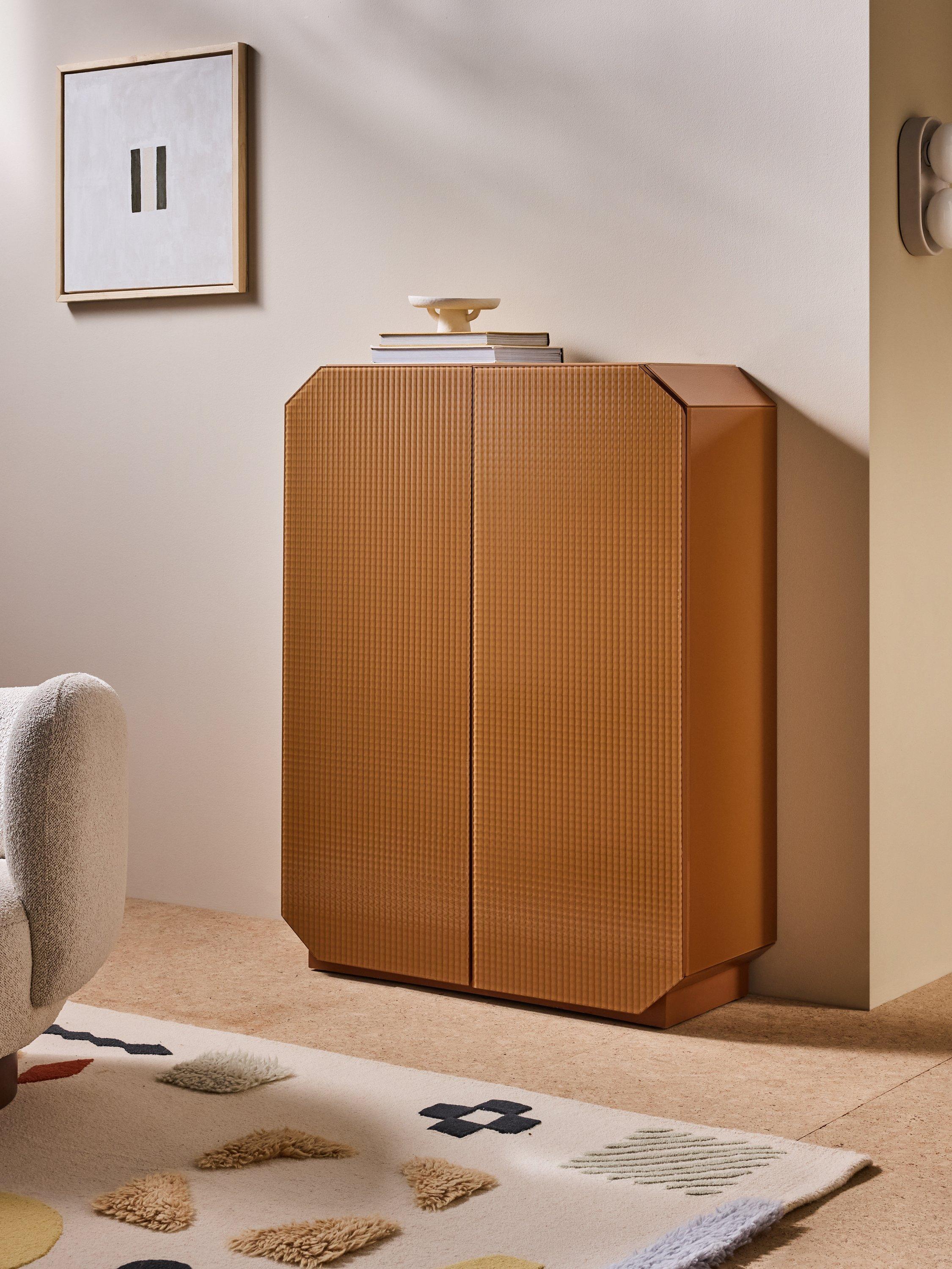 Anya is designed as a love letter to retro style. From the angular profile to the glass finish, this glass highboard offers stealthy storage and adds a warm tone to your favourite space. Check out the cross hatched detail for a must-touch feel.