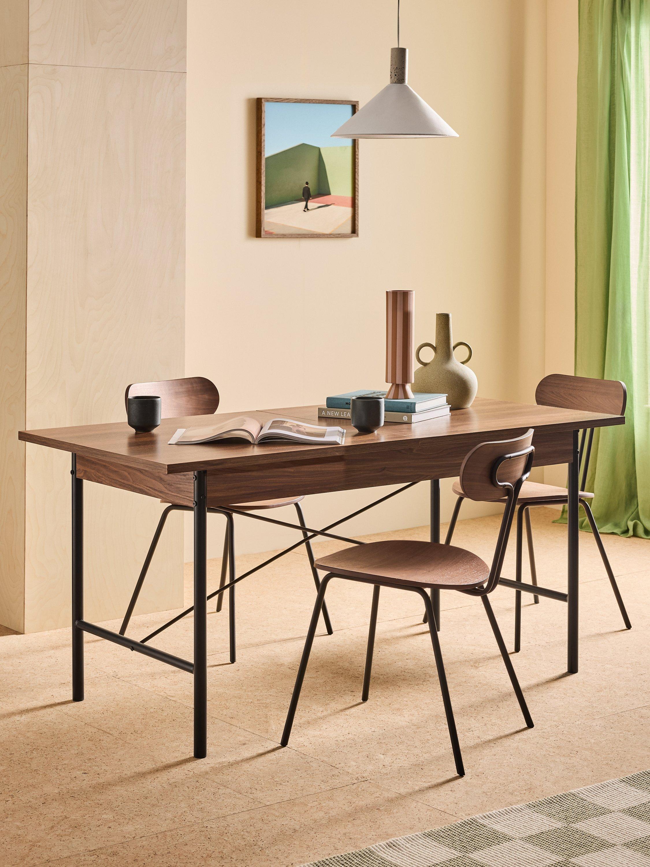 Take a look at Blaze for entertaining with a statement. Modernist design and uncomplicated function, it's a "yes" from us! The dark oak effect top and black metal legs are timeless, simple and sleek.