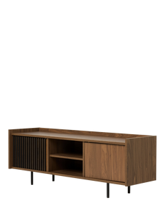 Blaze is storage that makes a statement. With modernist design and uncomplicated function, the slim walnut effect frame with black slatted detail and metal legs are timeless, simple and sleek. This beauty will keep your interior-obsessions satisfied, even when there's nothing on the TV.