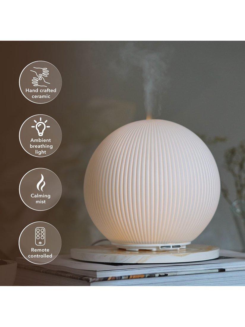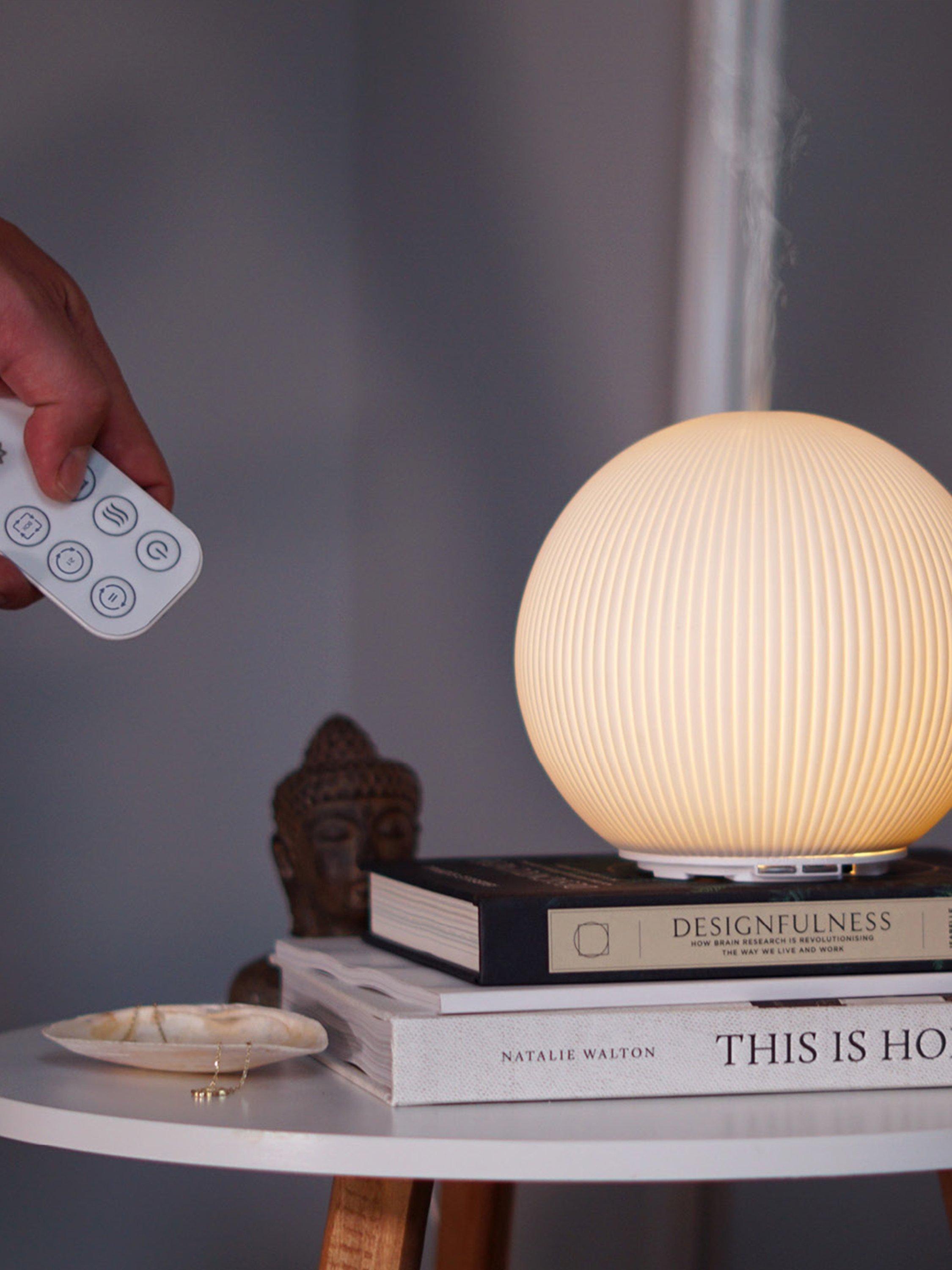 The Chi Aroma Diffuser is a sphere of calm. A beautiful object for the home and the perfect way to diffuse mood boosting fragrances. Its translucent ceramic cover offers a gentle soothing glow and comes with its very own remote control to ensure pure relaxation. The Chi diffuser also features a Breathwork coach. Let it lead you through three uplifting breathing exercises for a complete wellness experience. Wellness by design.