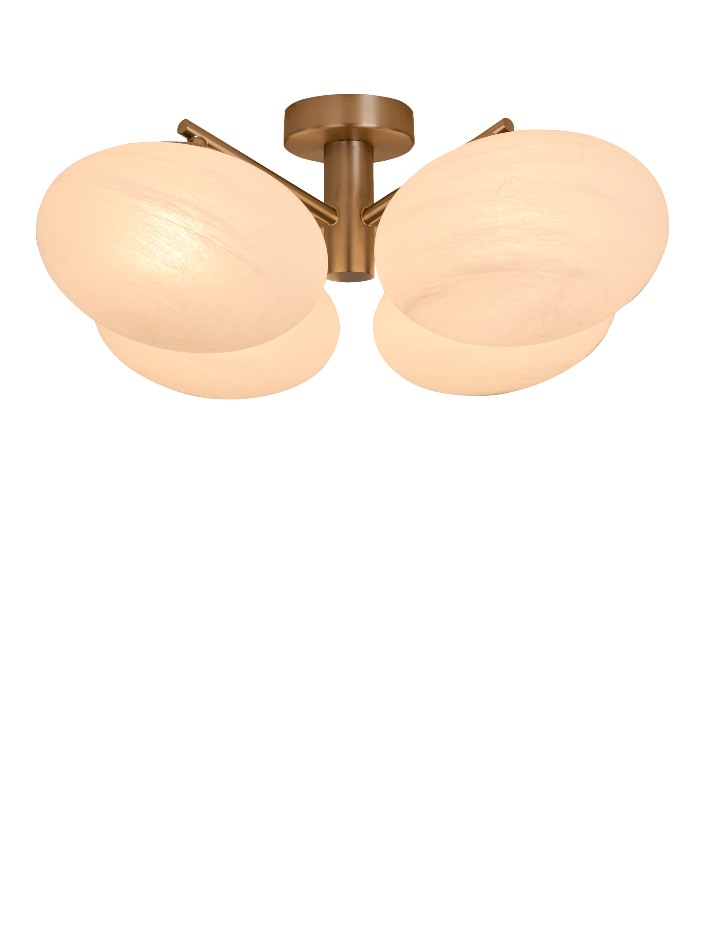 Caleb reinvents lighting. Featuring sleek brushed silver metalwork and four unique swirl space-like glass orbs, Caleb casts a soft, diffused glow that transforms any room. Ideal for lower ceilings and adding captivating light to your home.