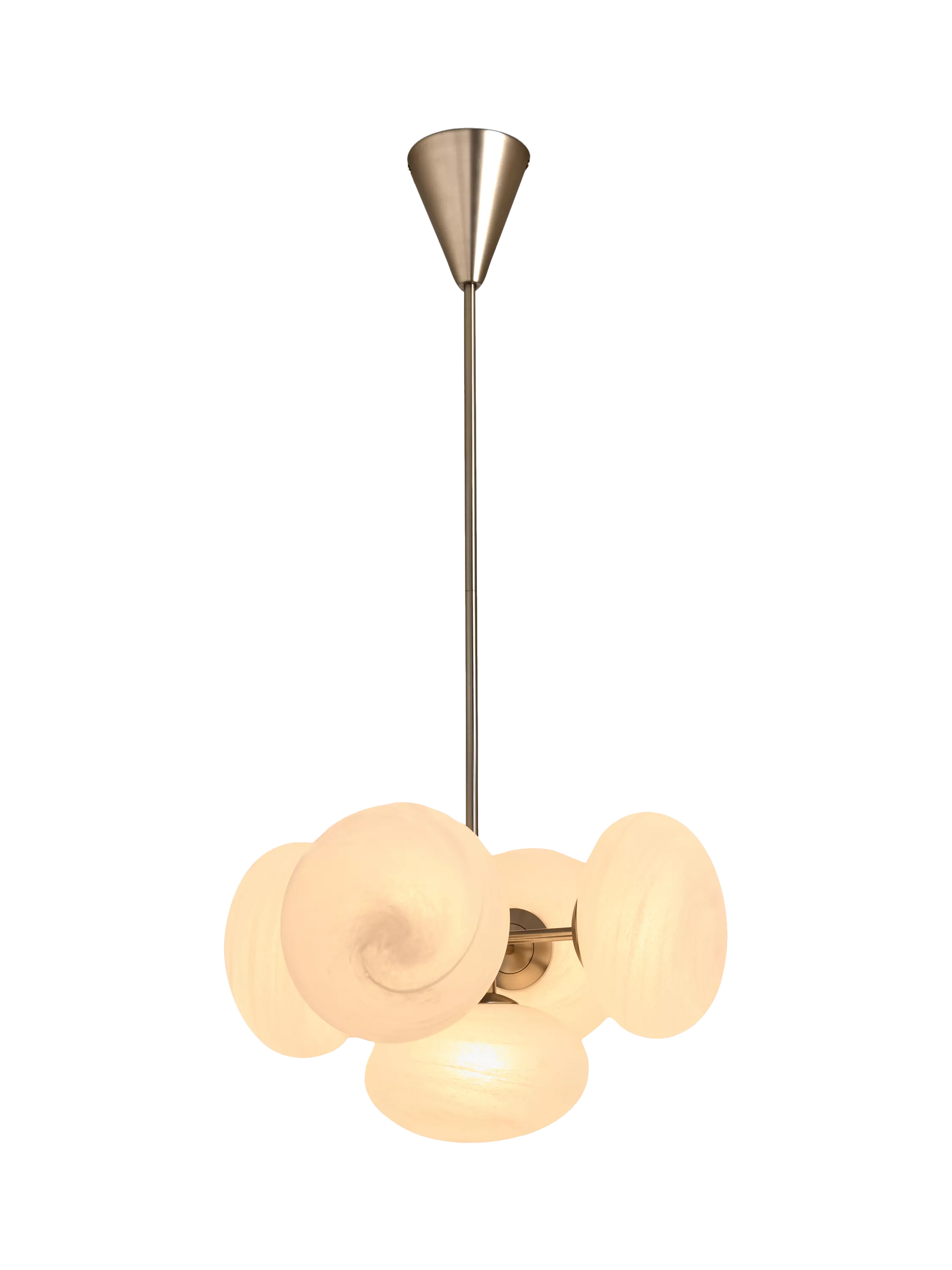 Caleb reinvents lighting. Featuring sleek brushed silver metalwork and five unique swirl space-like glass orbs, Caleb casts a soft, diffused glow that transforms any room. Ideal for adding captivating light to your home.