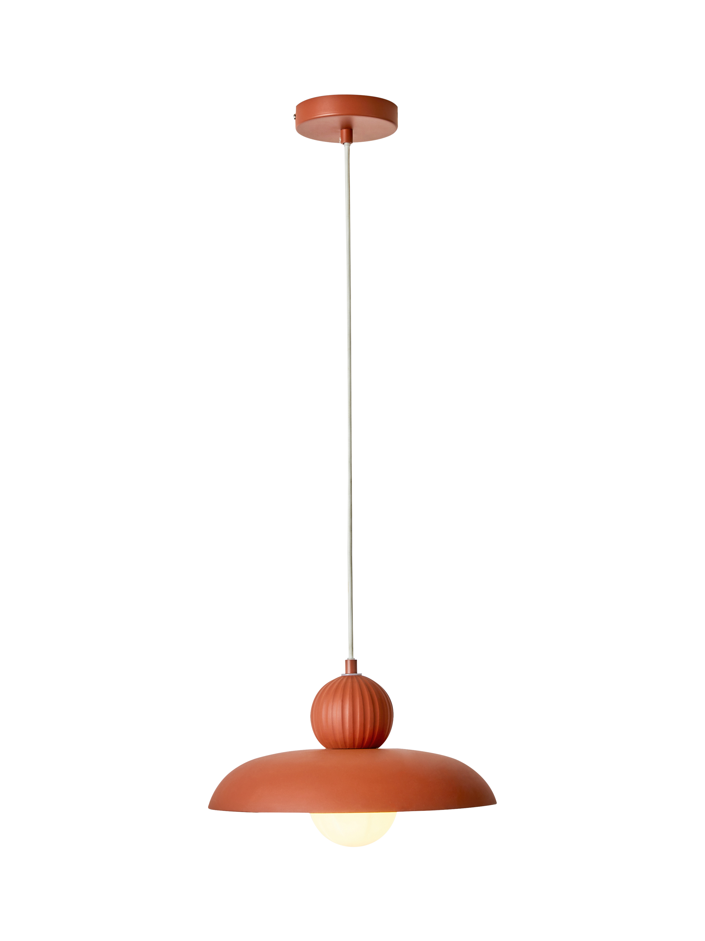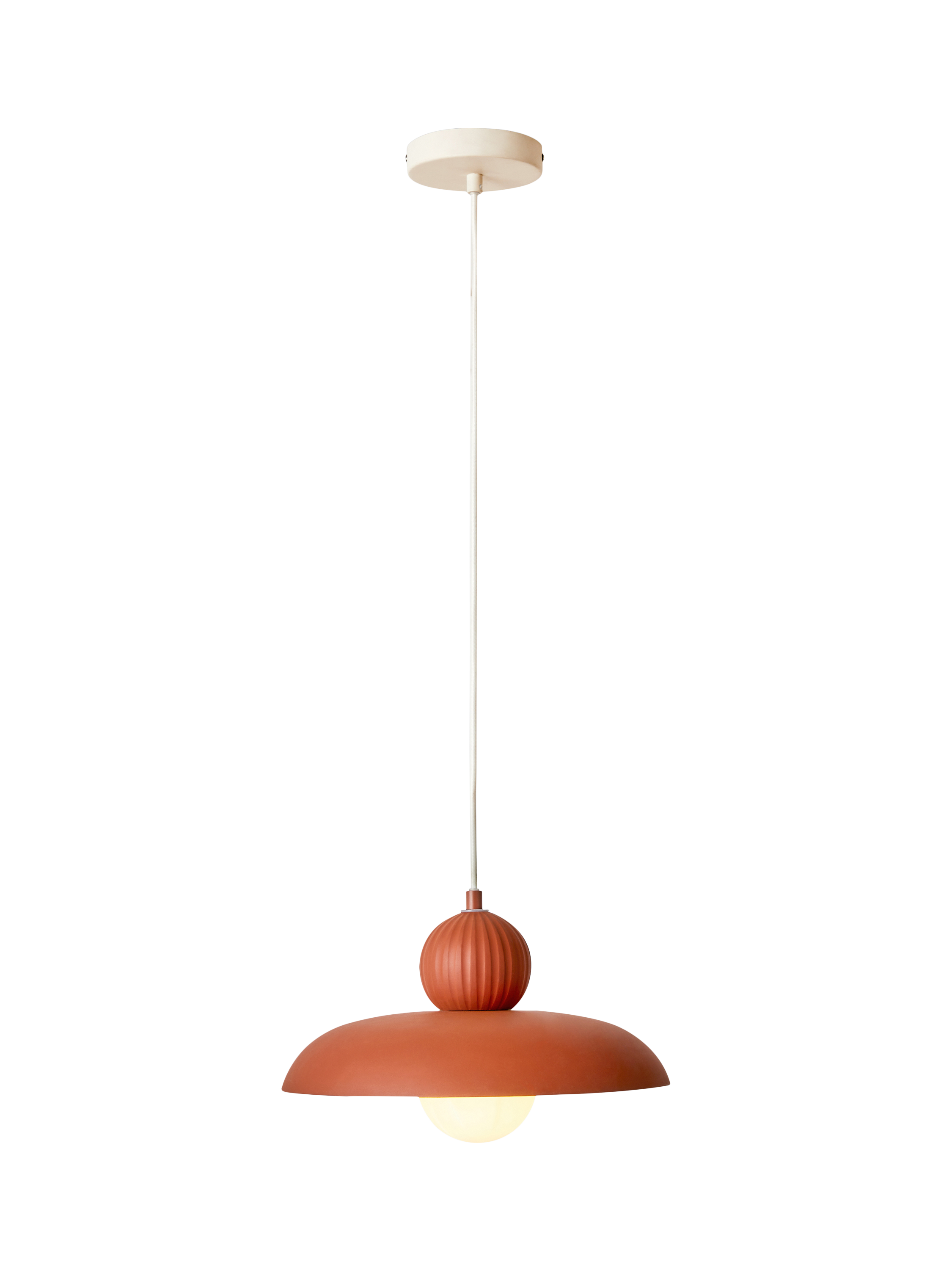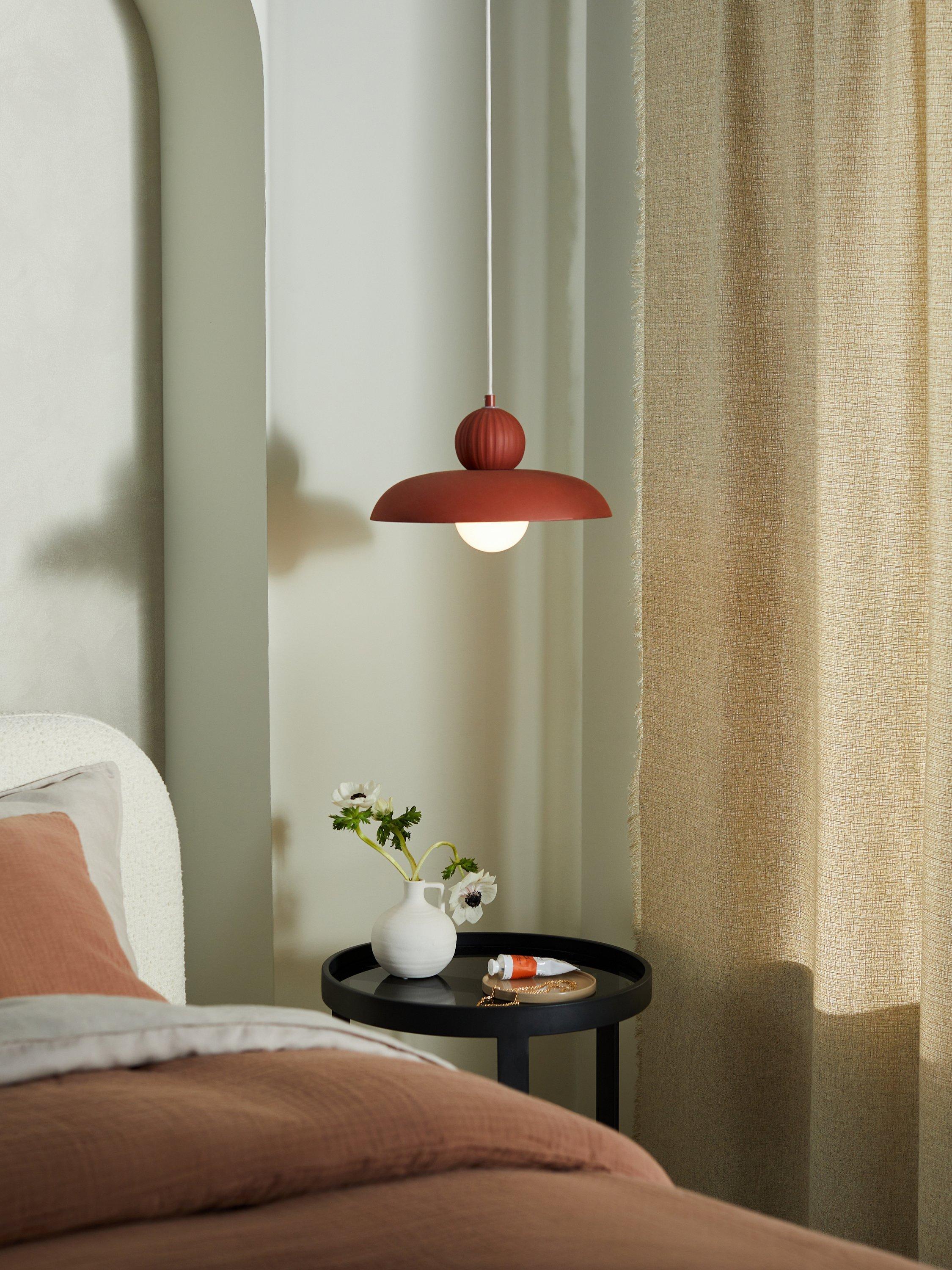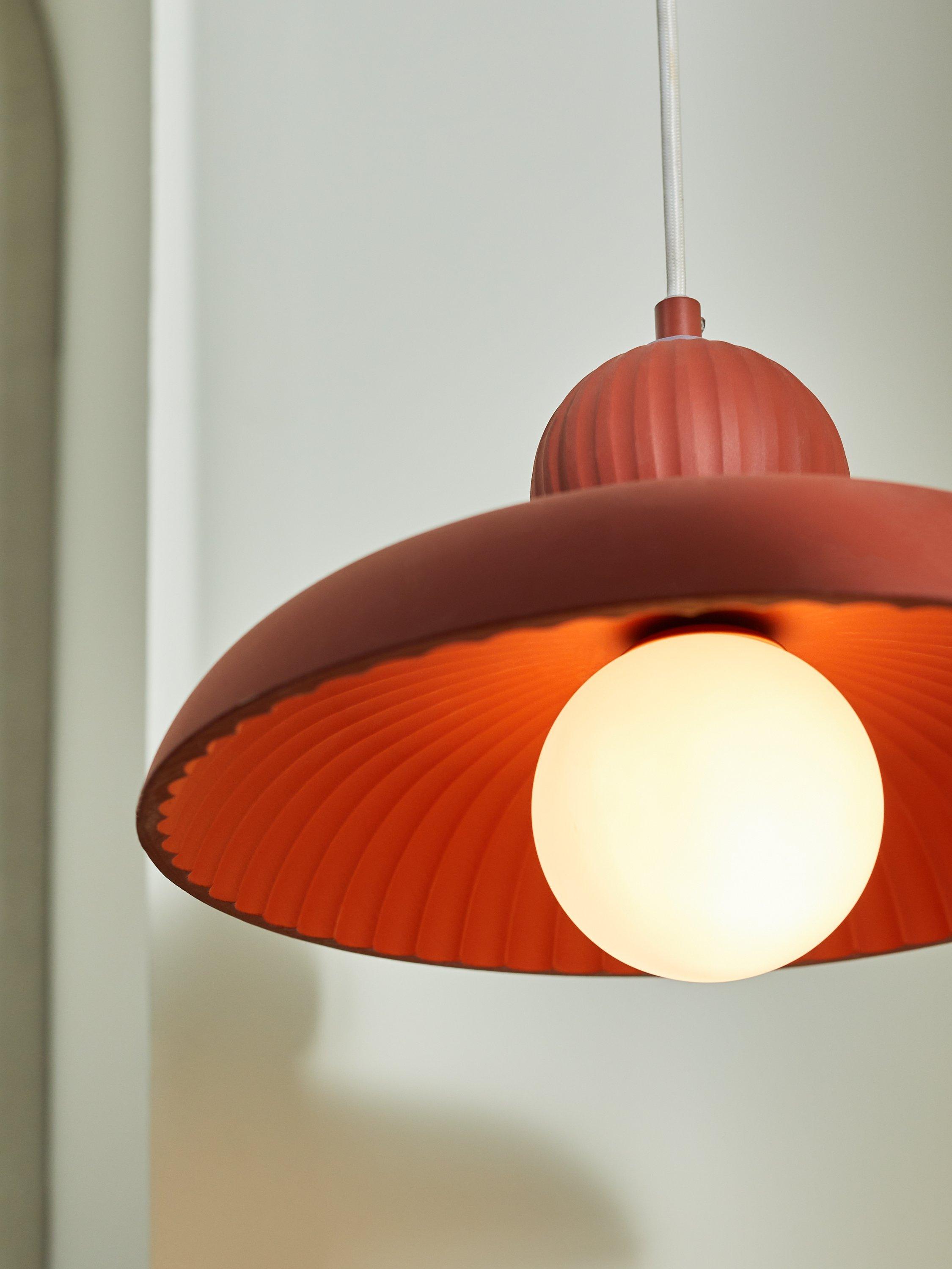 The Eliya pendant is a playful twist on Scandi cool. In a muted matte finish with textured detail and a wide shade, the look is clean and minimal.