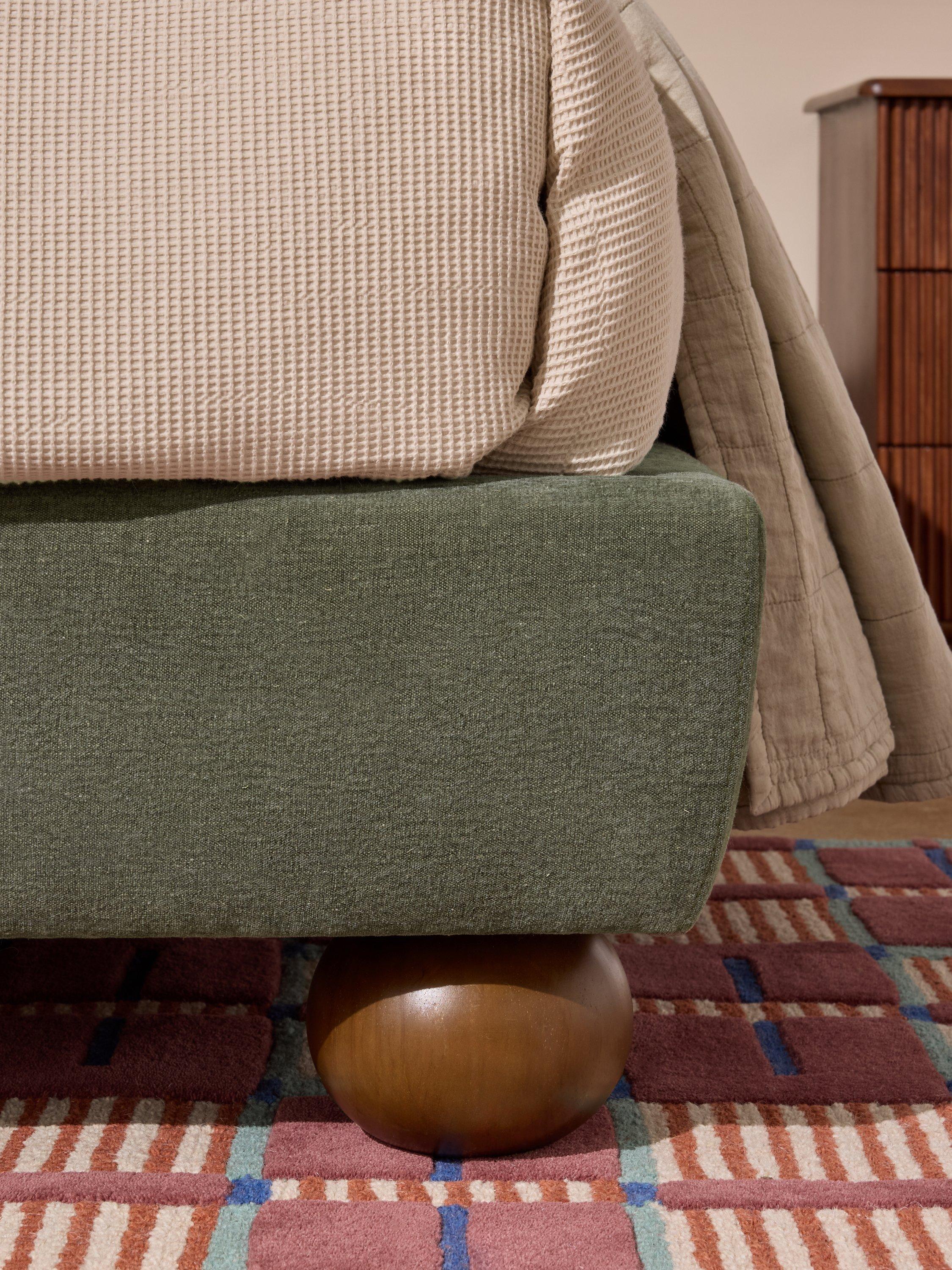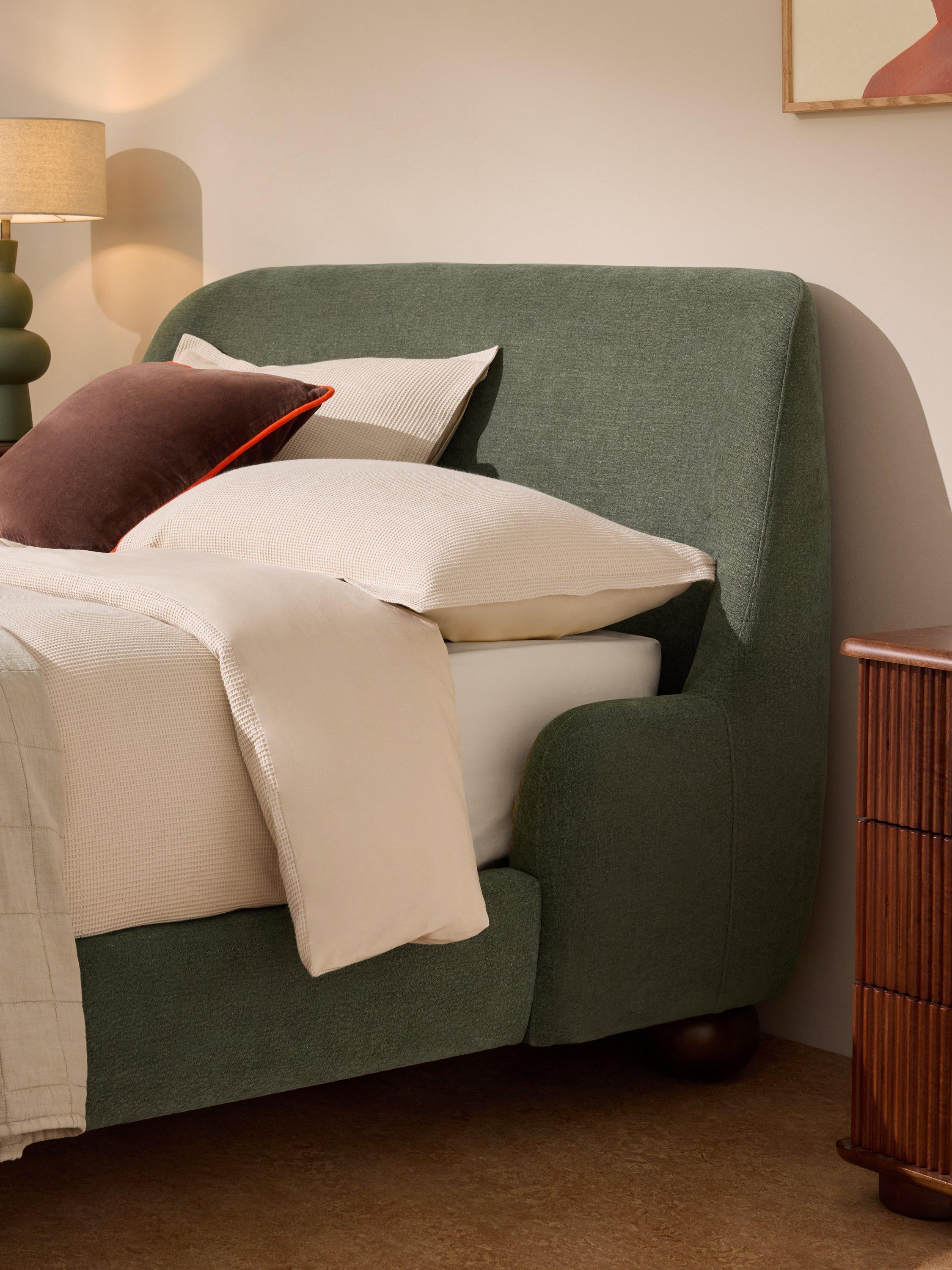 The Ellio accent bed is inspired by classic, elegant interiors. Soft curves enhance the simple shape of the back frame and arms and the wooden bun feet give a subtle design feature. Designed by the MADE in-house design team.
