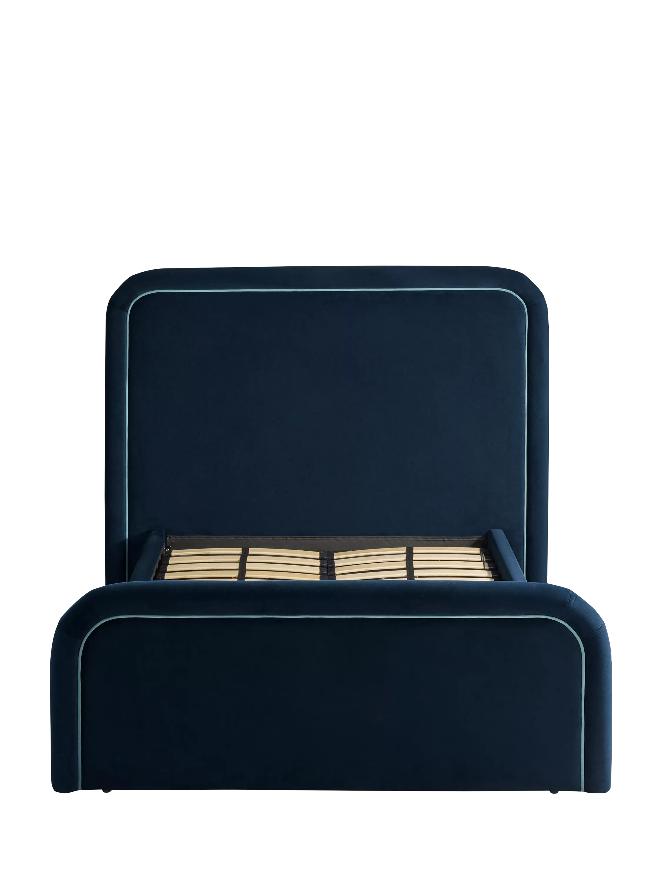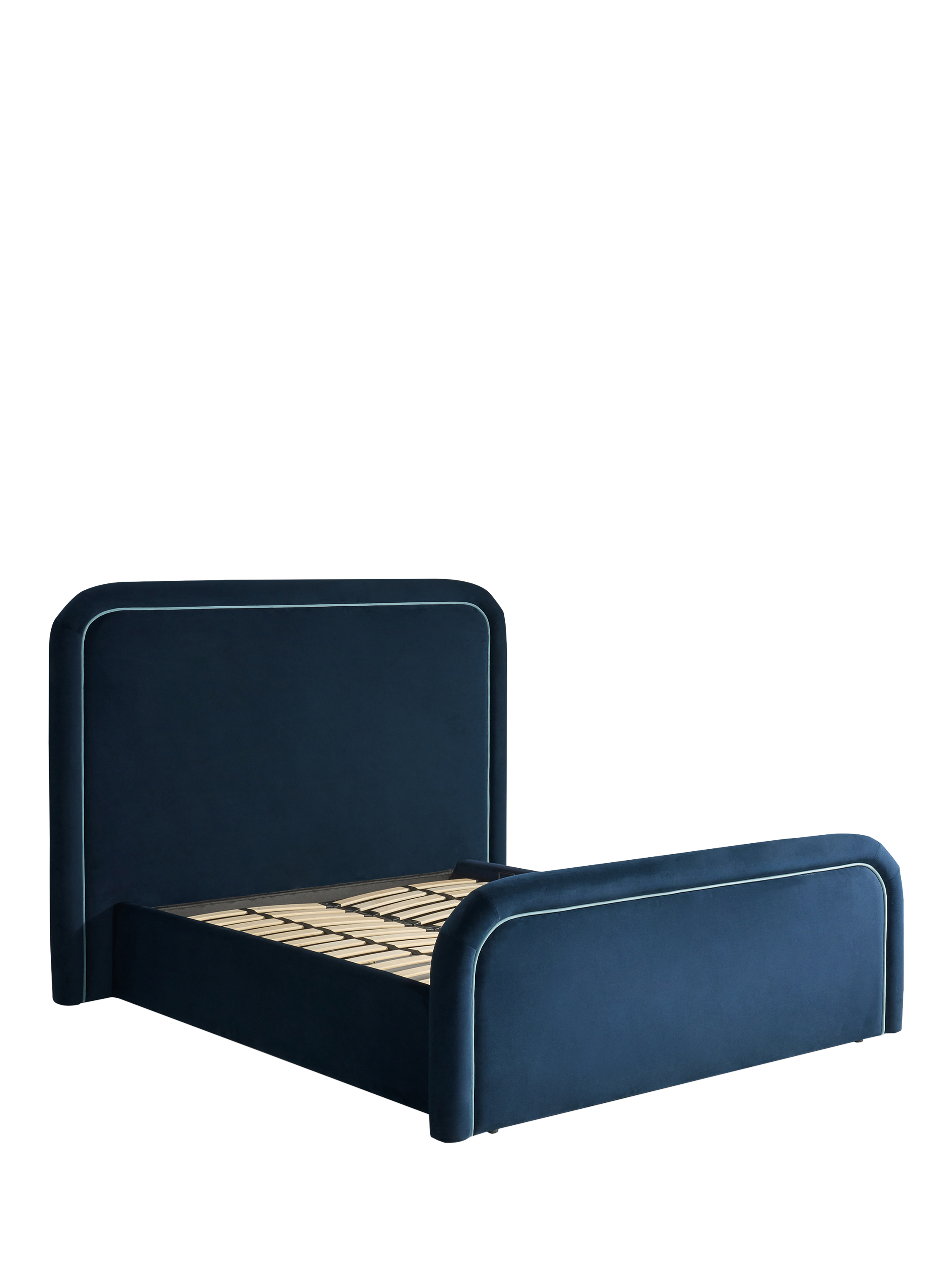 The Etta Ottoman Storage Bed is inspired by classic, elegant interiors. Soft curves are enhanced by plush velvet upholstery. Designed by the MADE in-house design team.