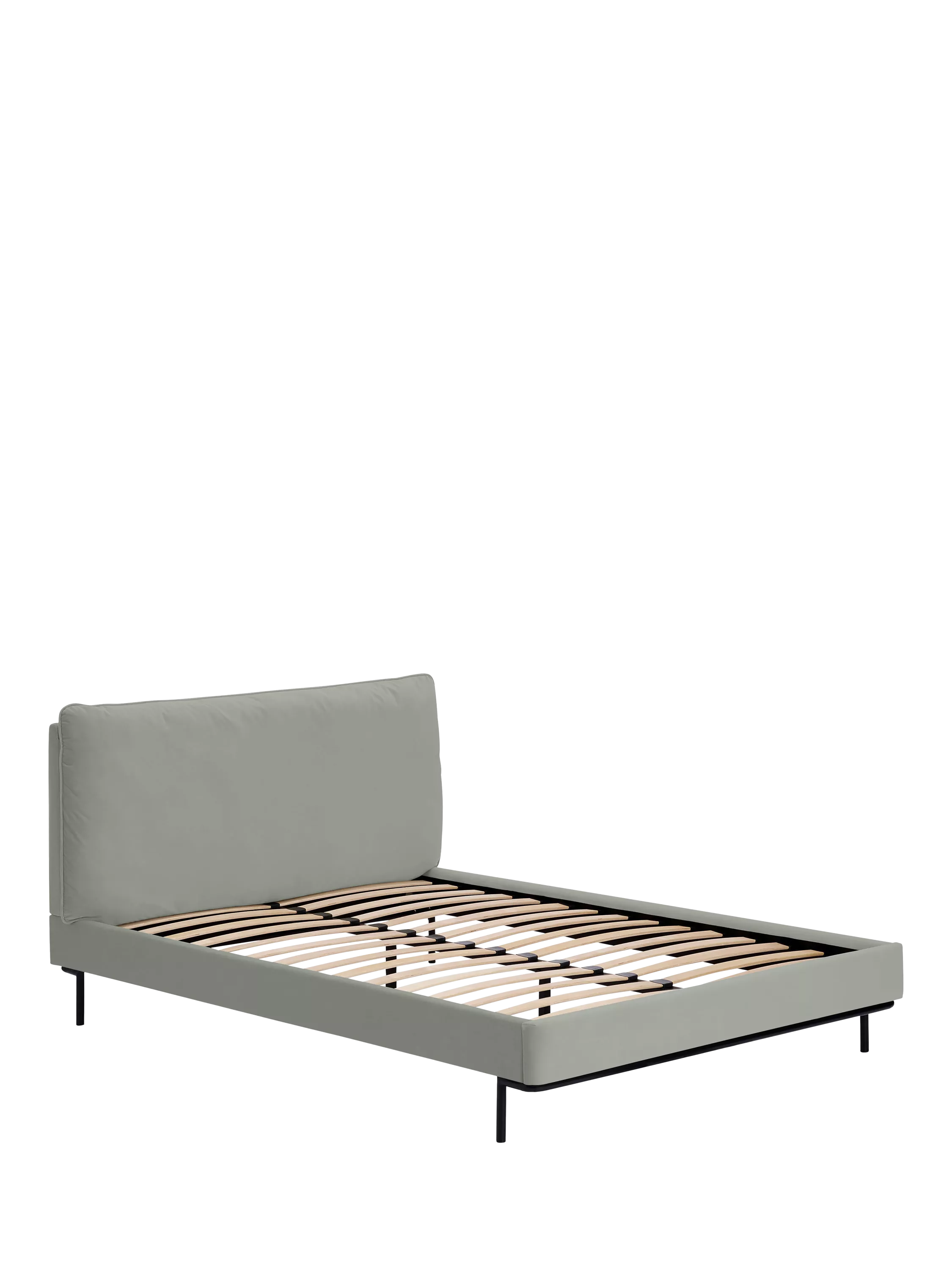 Created by MADE's in-house design team, the Harlow bed frame is a must-have for contemporary spaces. Its sleek and modern design includes a soft and pillowy cushioned headboard and it's supported by shaped metal legs. Complete with supportive sprung slats.