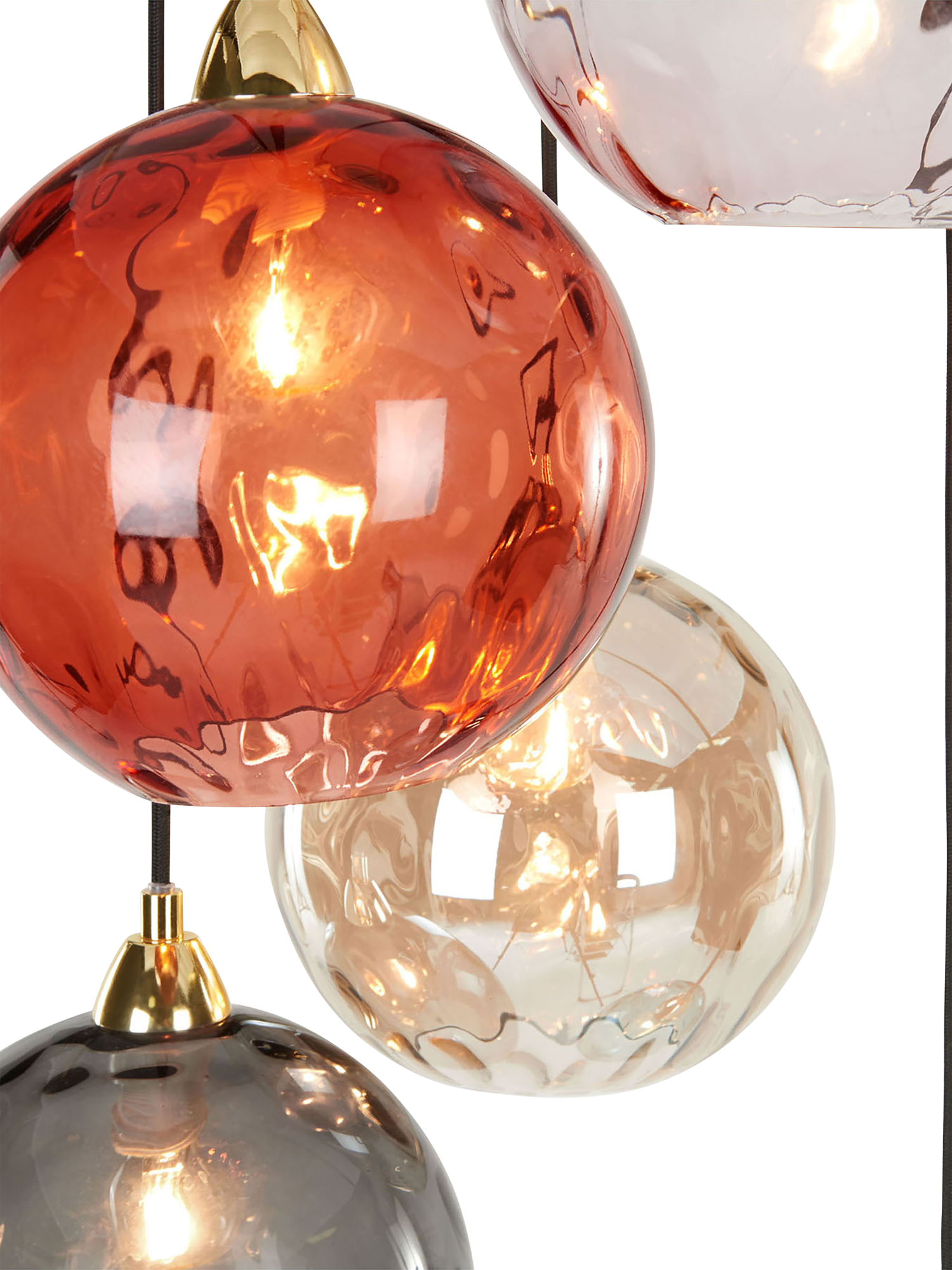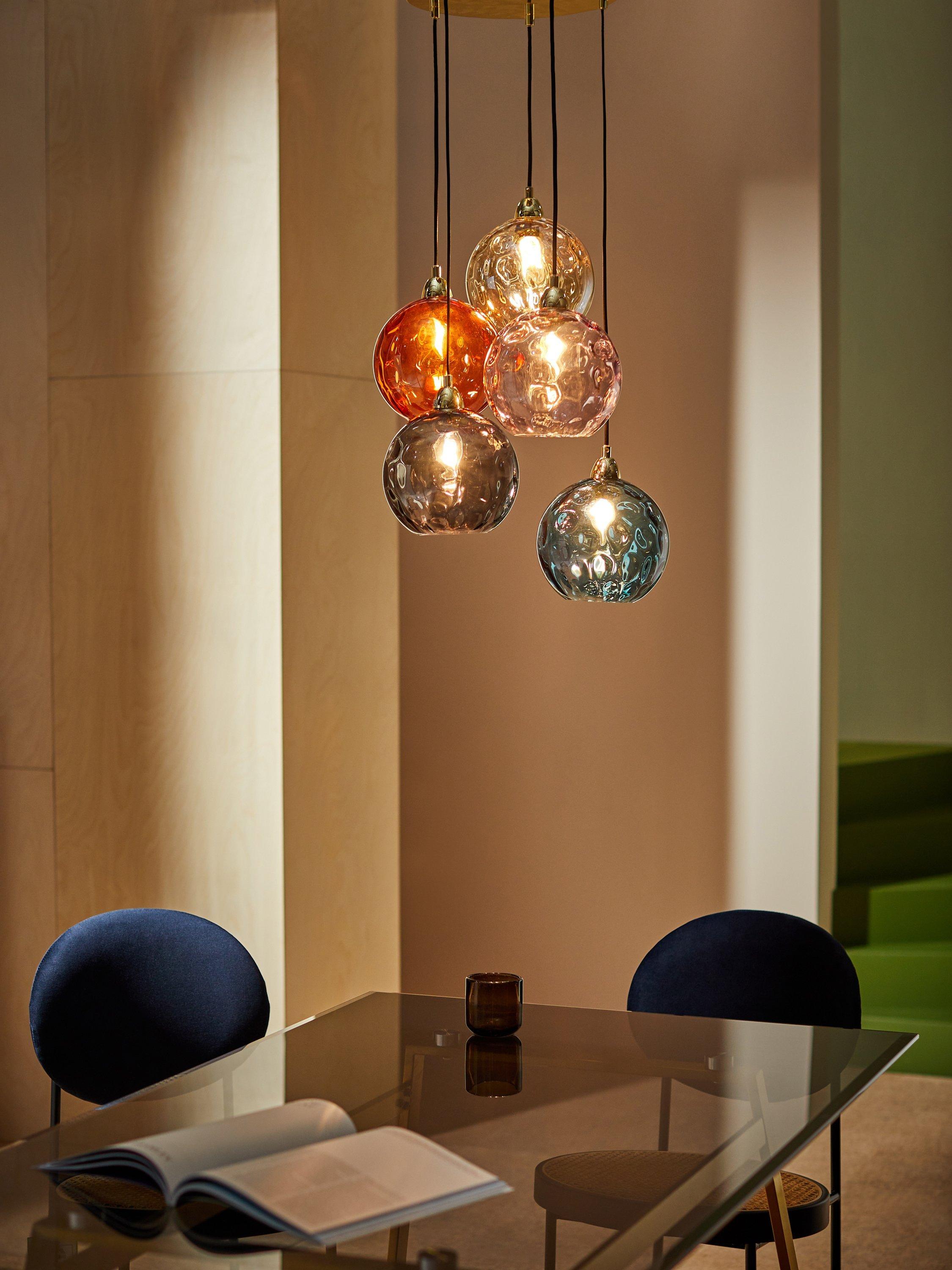 Ilaria's soft pastel shades and brass accents add style to your space, even with the lights off. Designed by MADE in-house and made from mouth-blown glass, the glass shades are smooth on the outside, with an optical finish interior to create a gentle refraction when you switch it on, giving the room a diffused glow.