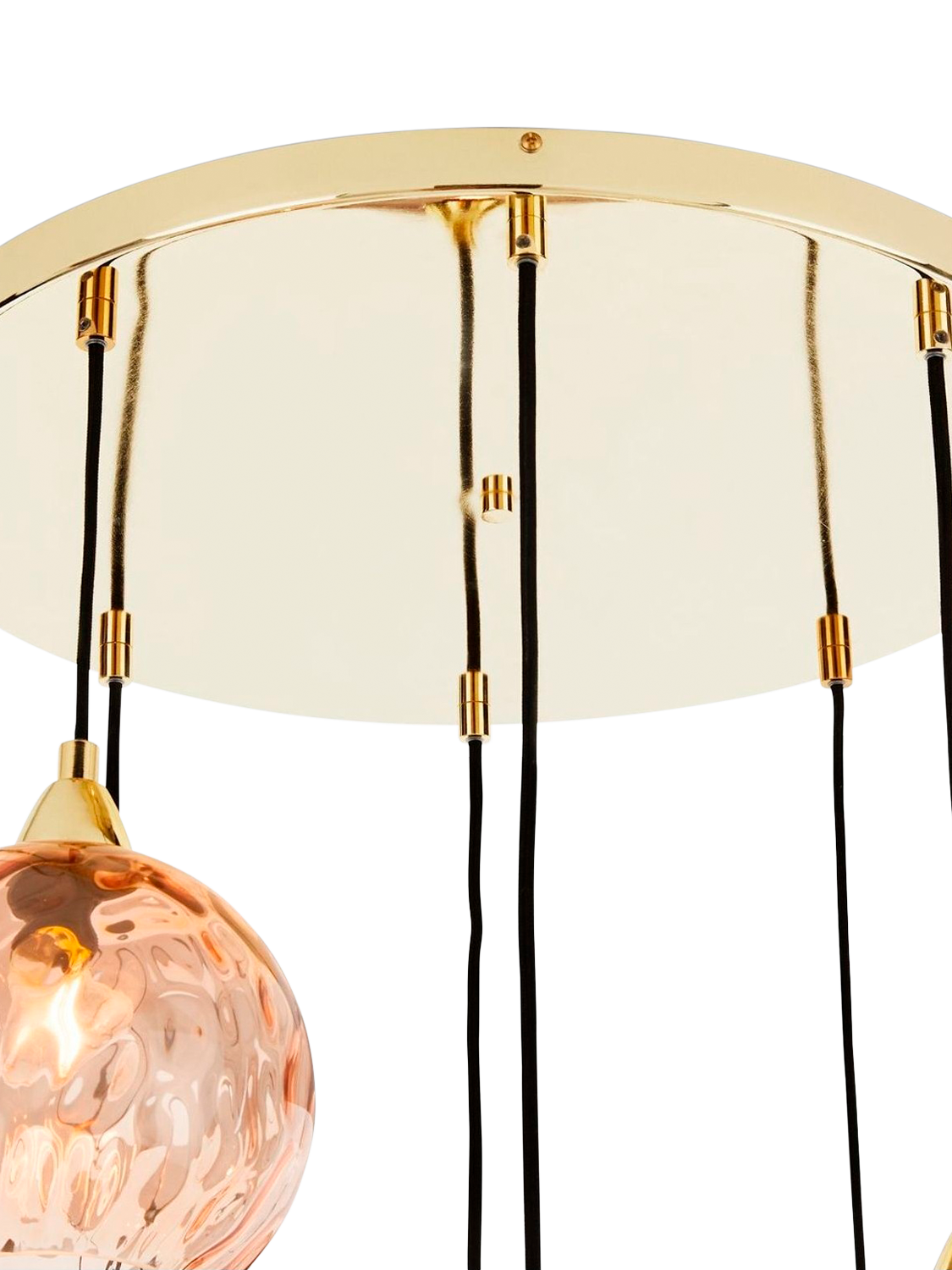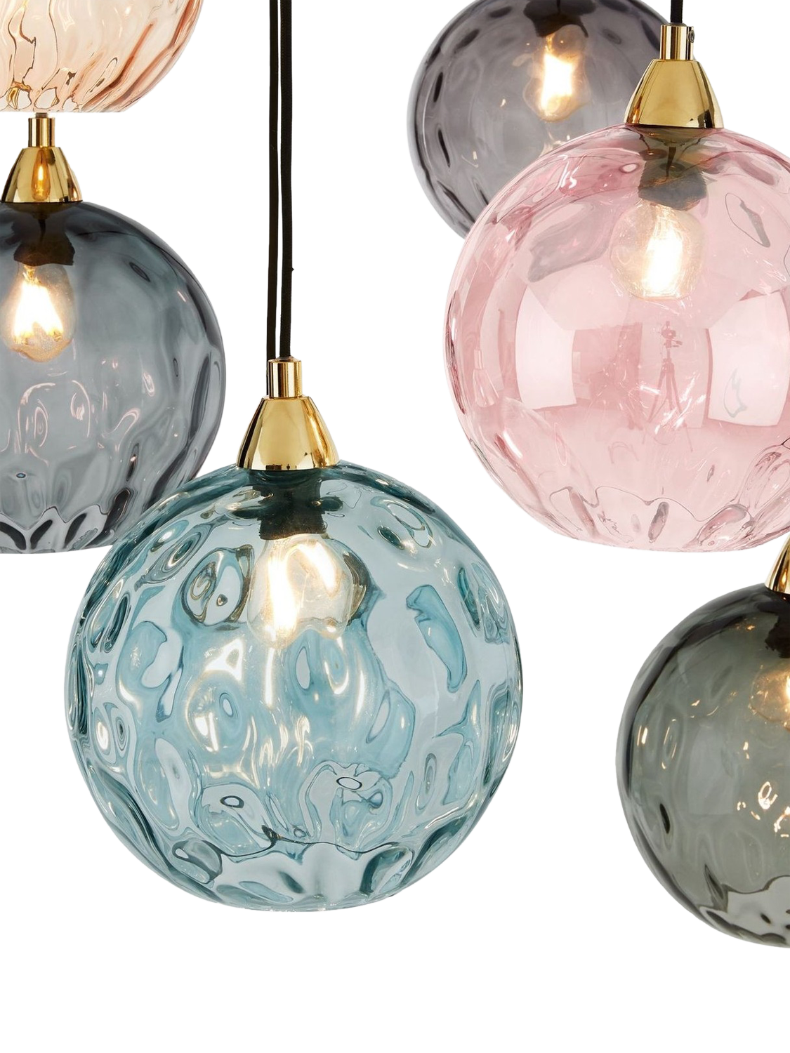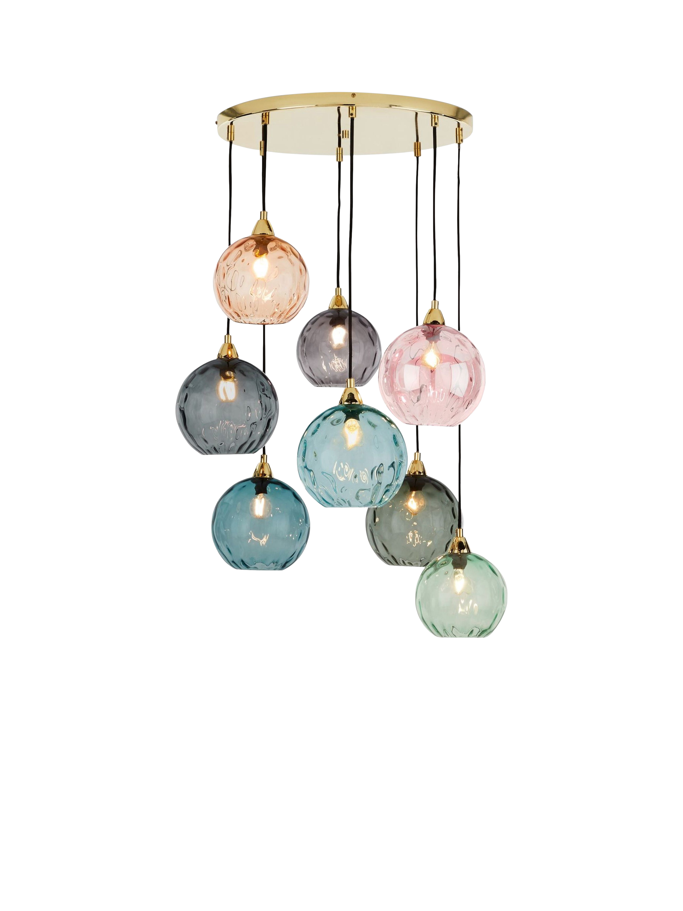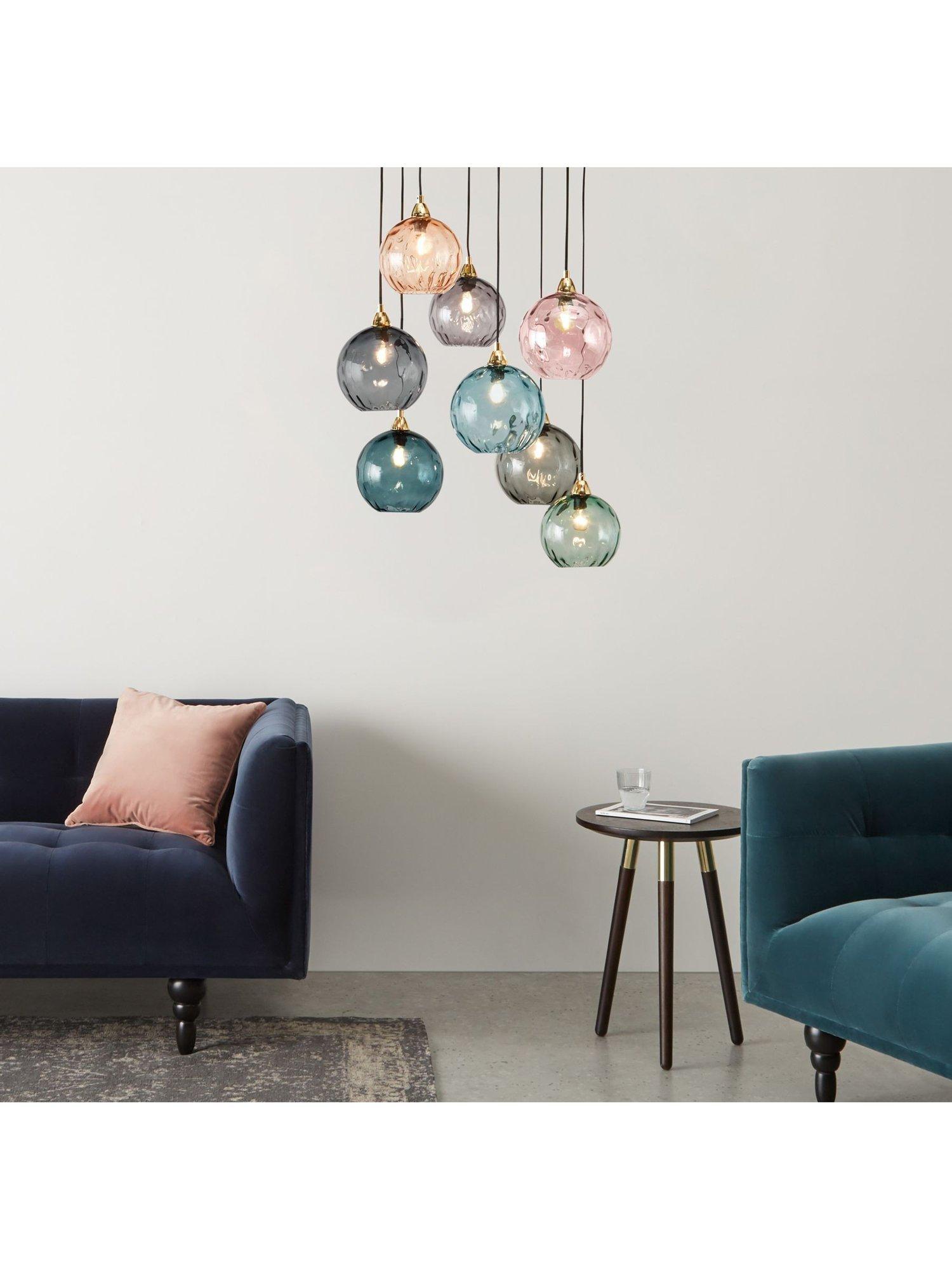 Ilaria's soft pastel shades and brass base add style to your space, even with the lights off. Designed in-house and made from mouth-blown glass shades that are smooth on the outside, with an optical finish inside, to create a gentle refraction when they're switched on, giving the room a diffused glow.