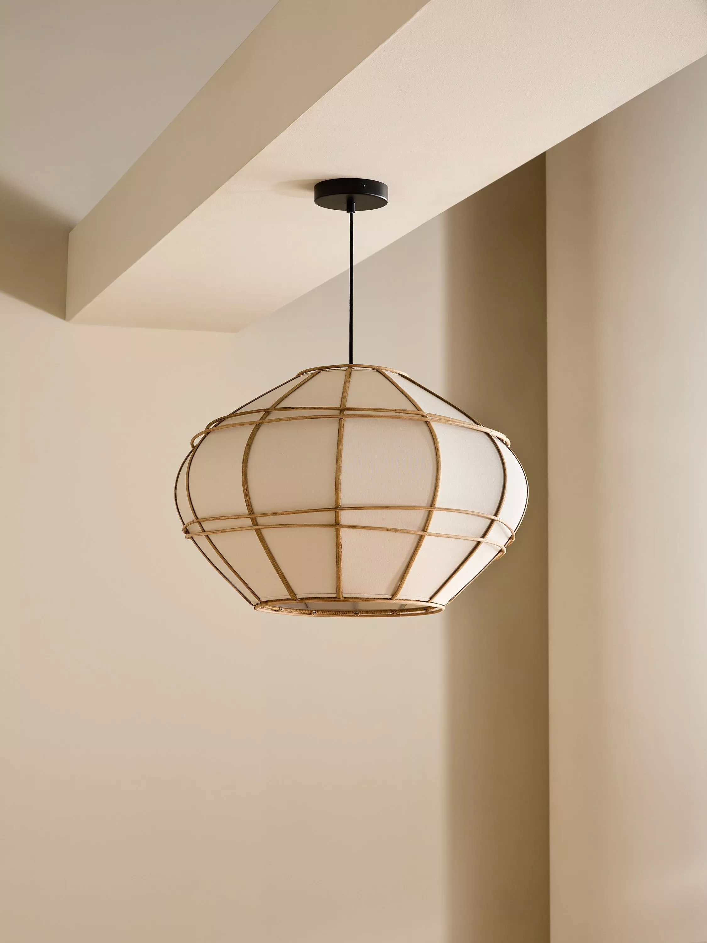 All eyes on the Judah pendant. This ceiling light's round, organic linen-effect shade is wrapped in bamboo and gives off the warmest glow. Drop low for the stand-out factor.