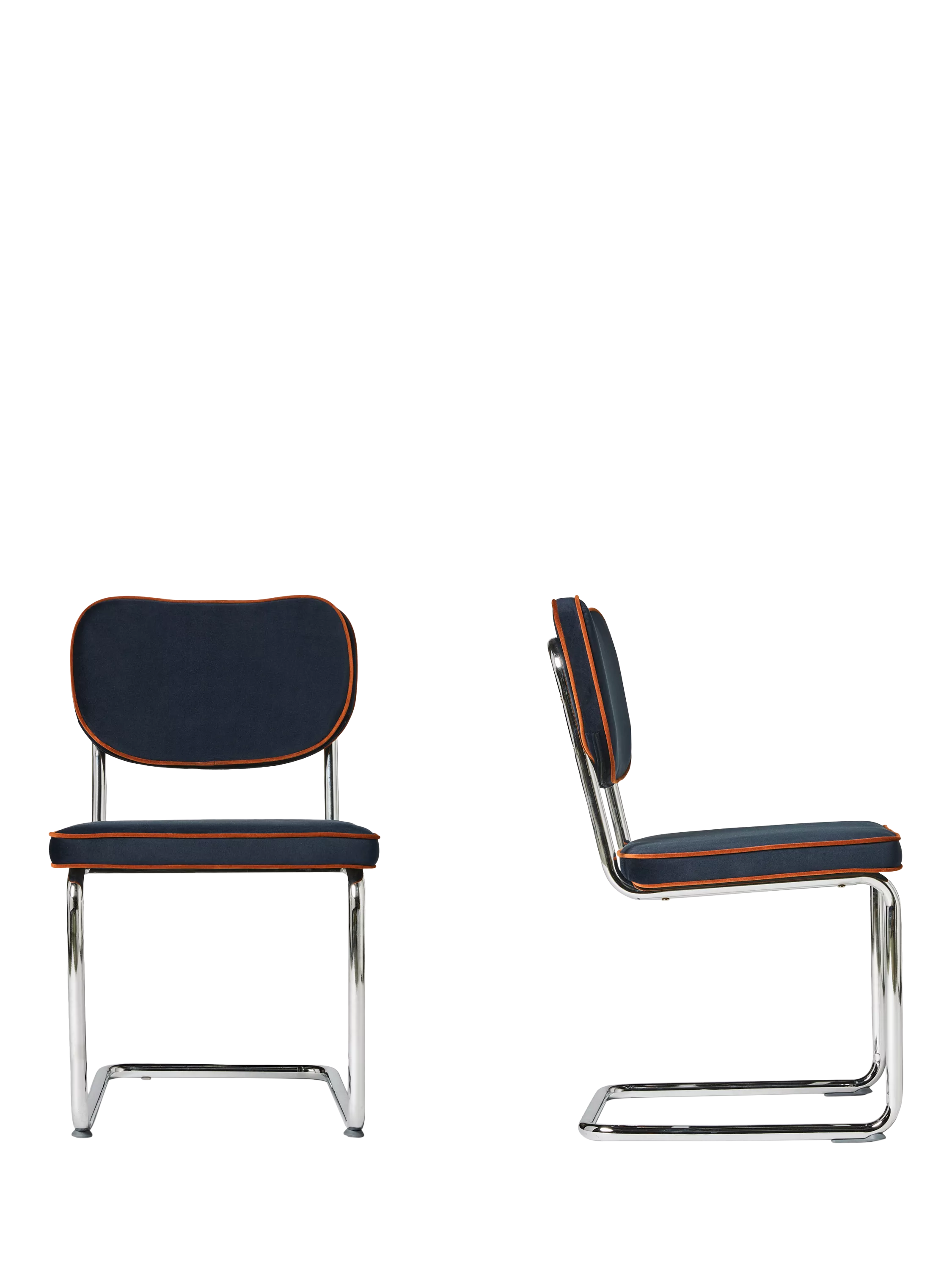 Stainless steel, counter legs and clashing contrast piping. These comfy dining chairs are sold as a pair.